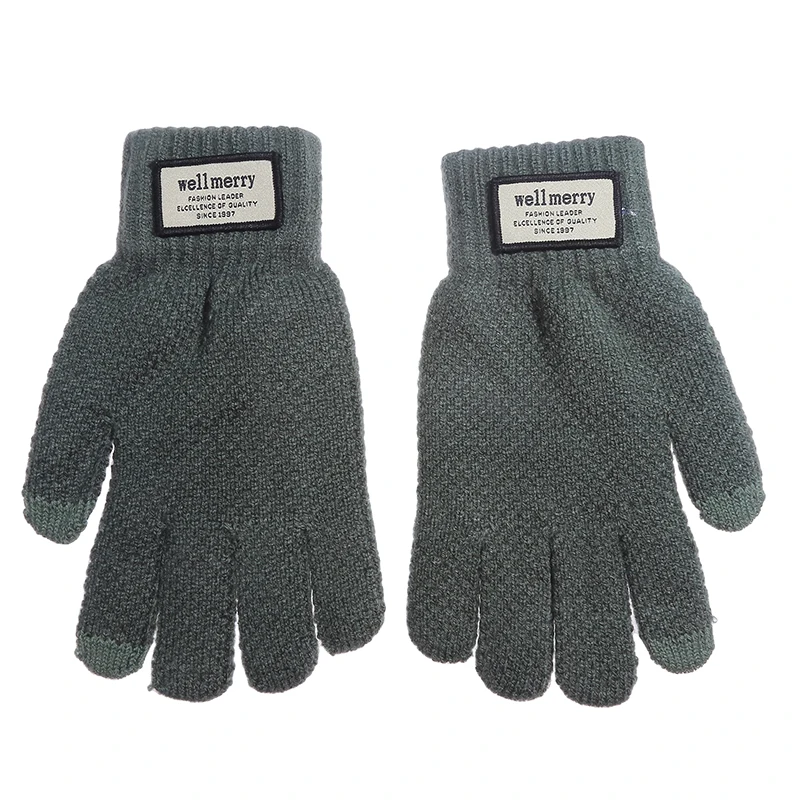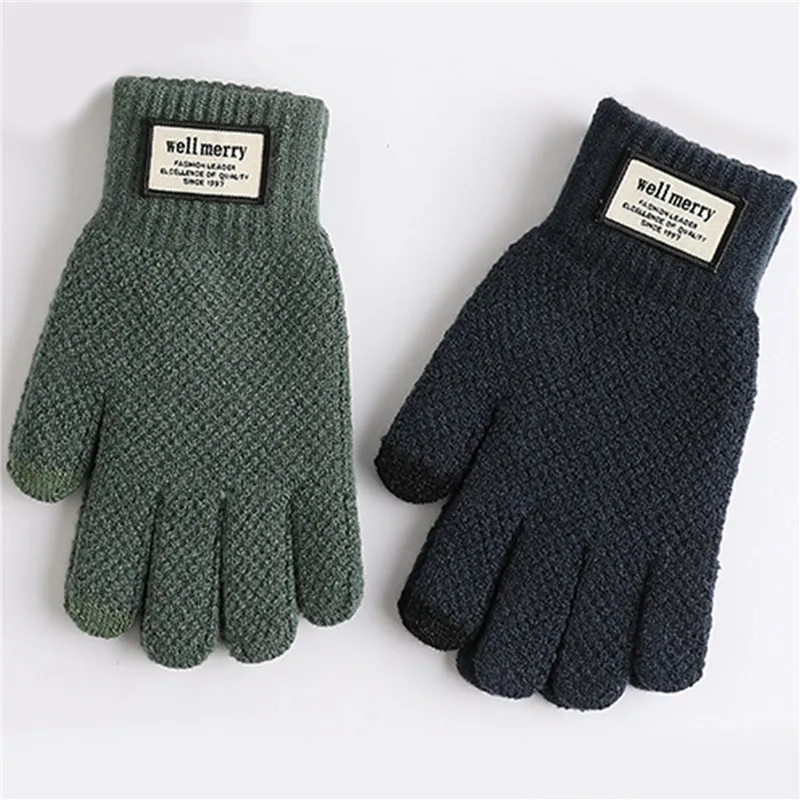 High-quality thickened warm wool and cashmere solid color gloves, autumn and winter men’s knitted touchscreen gloves