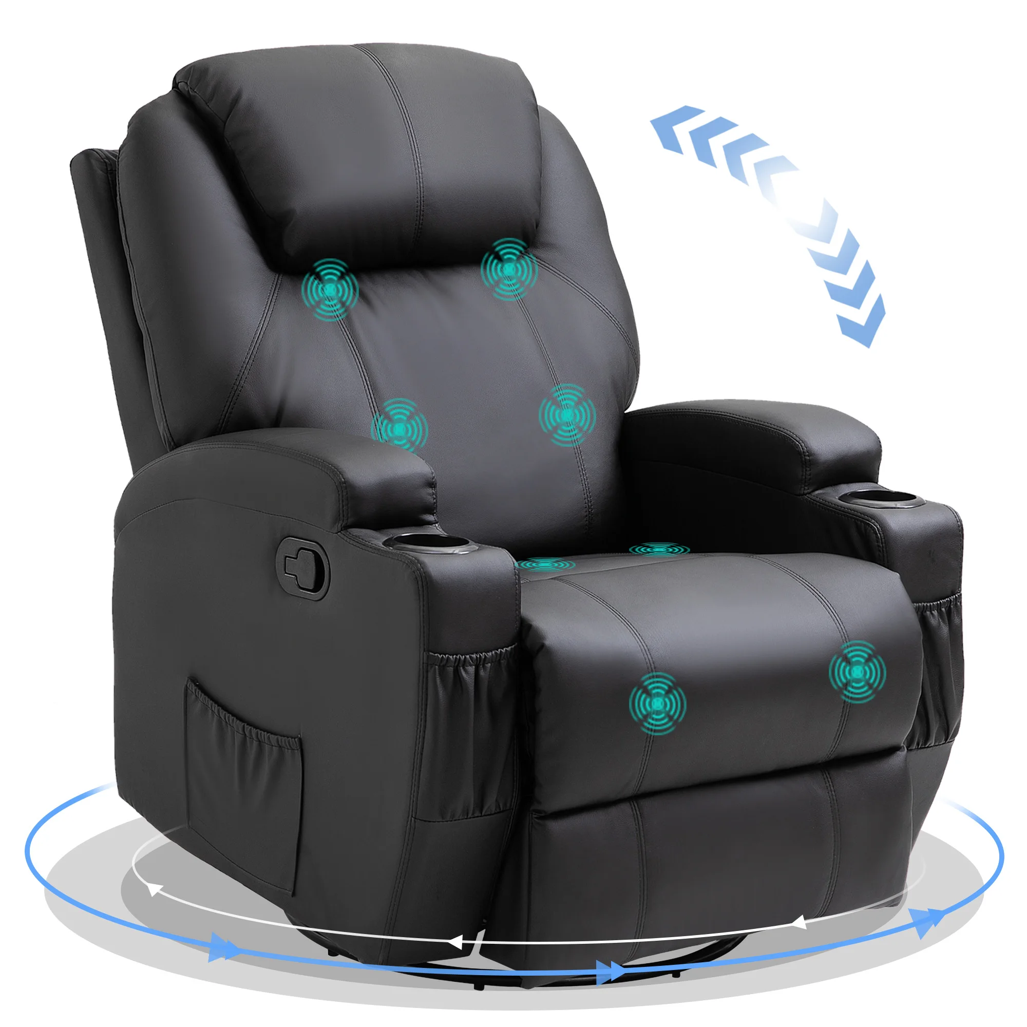 ● Seat moves a full 360°, rock back and forth for relaxation