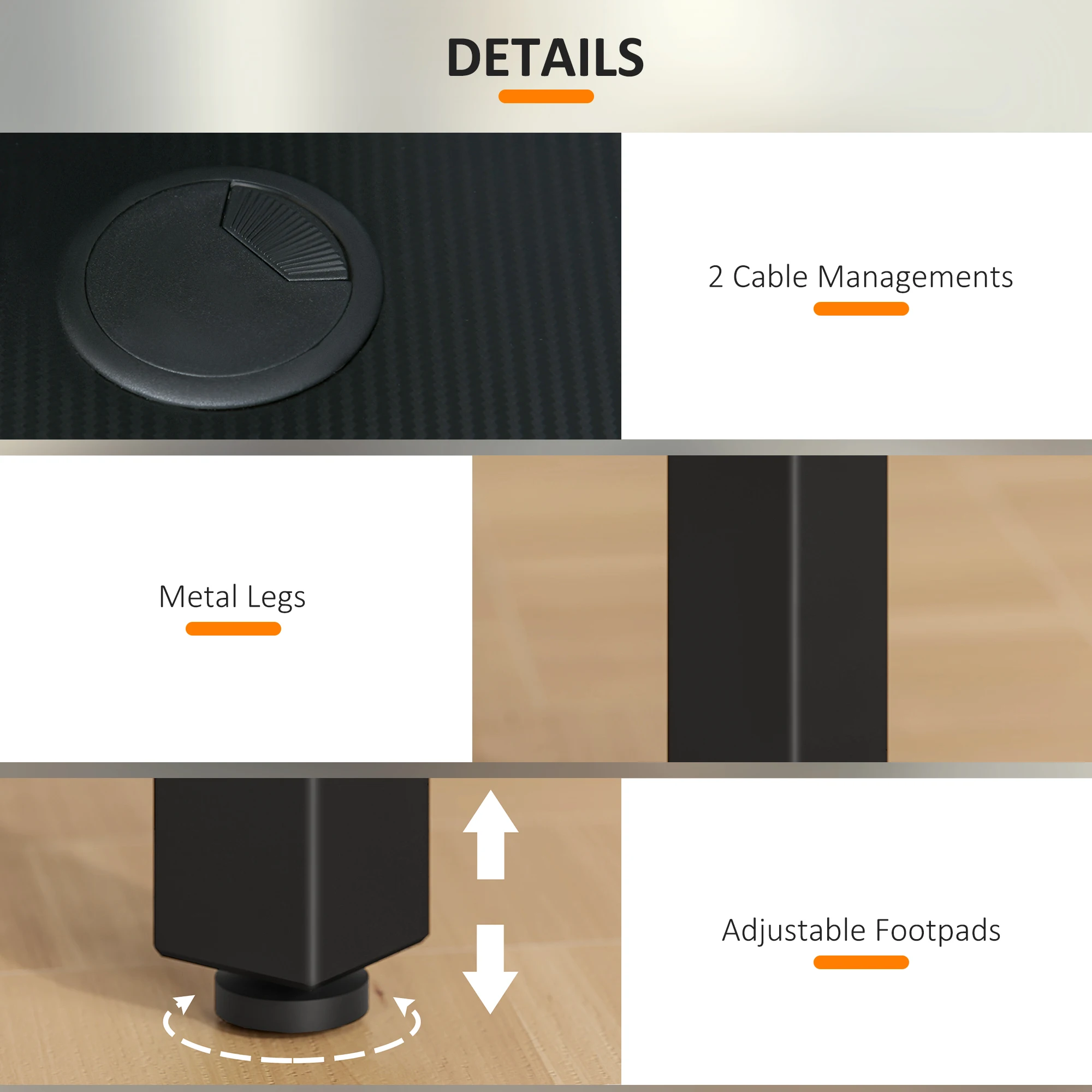 Attention to detail wins games and trust that this ergonomic gaming desk is built to win. “L” shape design gives more working space than your average table – room for two screens/monitors, keyboard, work/gaming essentials, whilst giving you plenty of freedom to work and play. The frame is made for metal for a solid base, supporting up to 50 kg. Robust particle board table-top is covered in a textured finish for a standout look. Completed with two cable holes at the back.