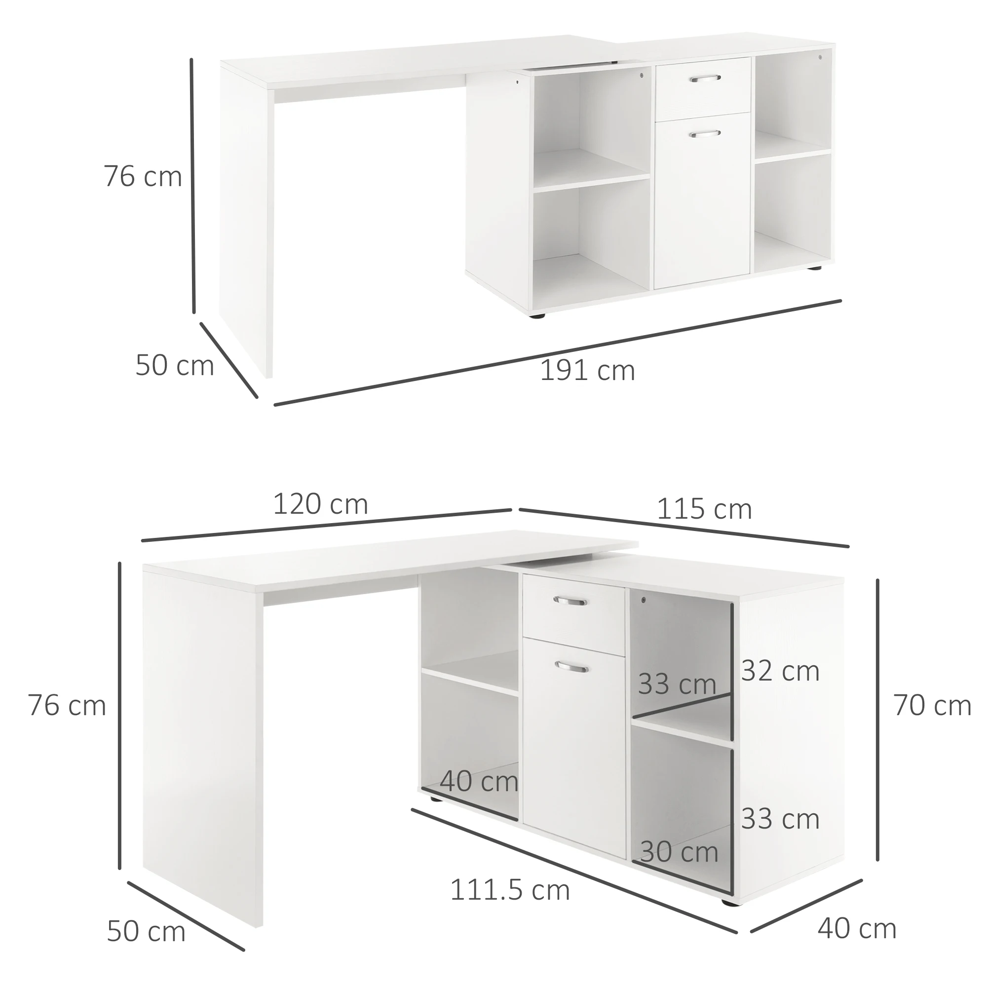 • L-shape to I- shape, this desk and file cabinet set can be rotated to make full use of your inner space