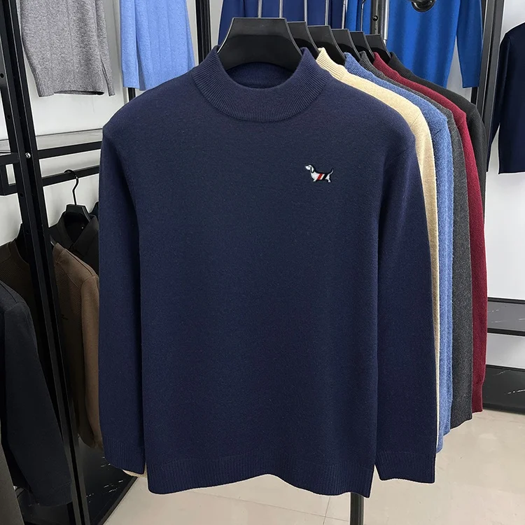 Hot Sales Brand Men’s O-Neck Long Sleeve Wool Knitwear Autumn Winter New Arrival Solid Color Dog Print Fashion Commute Men’swear