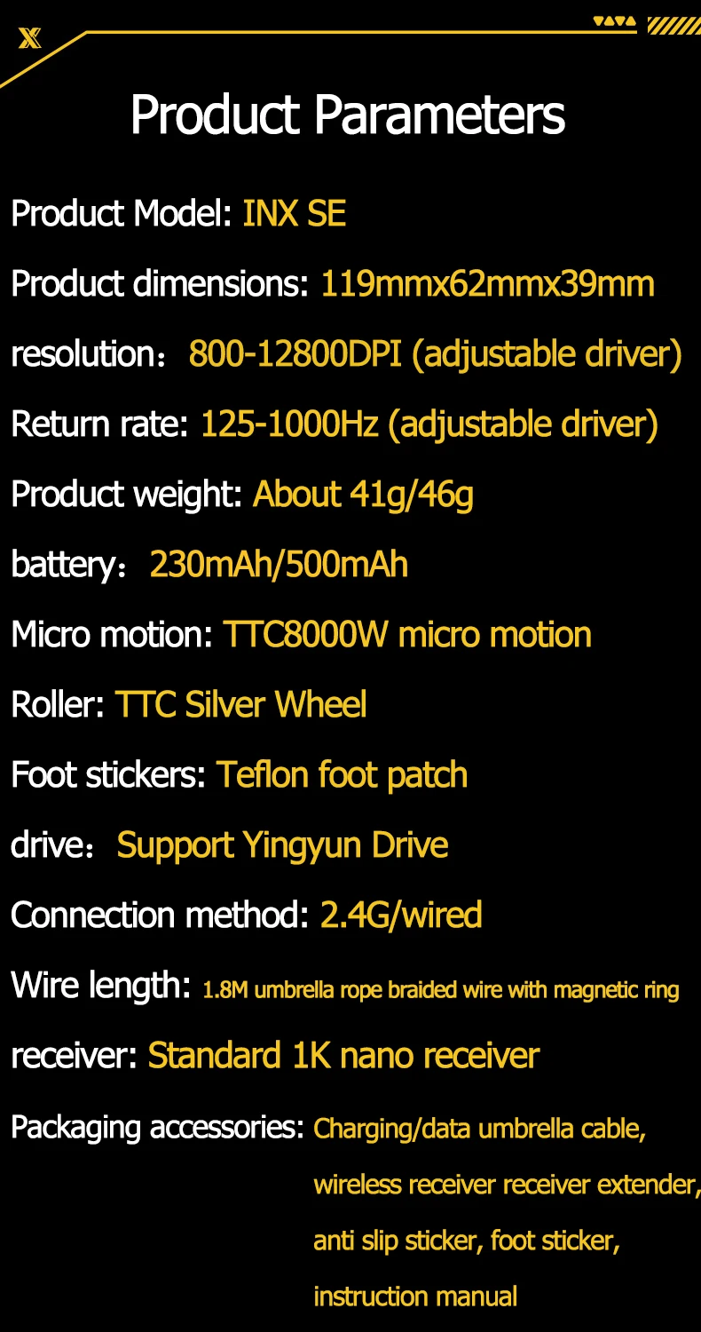 Packaging accessories:Charging cable,USB wireless receiver,receiver extender,manual