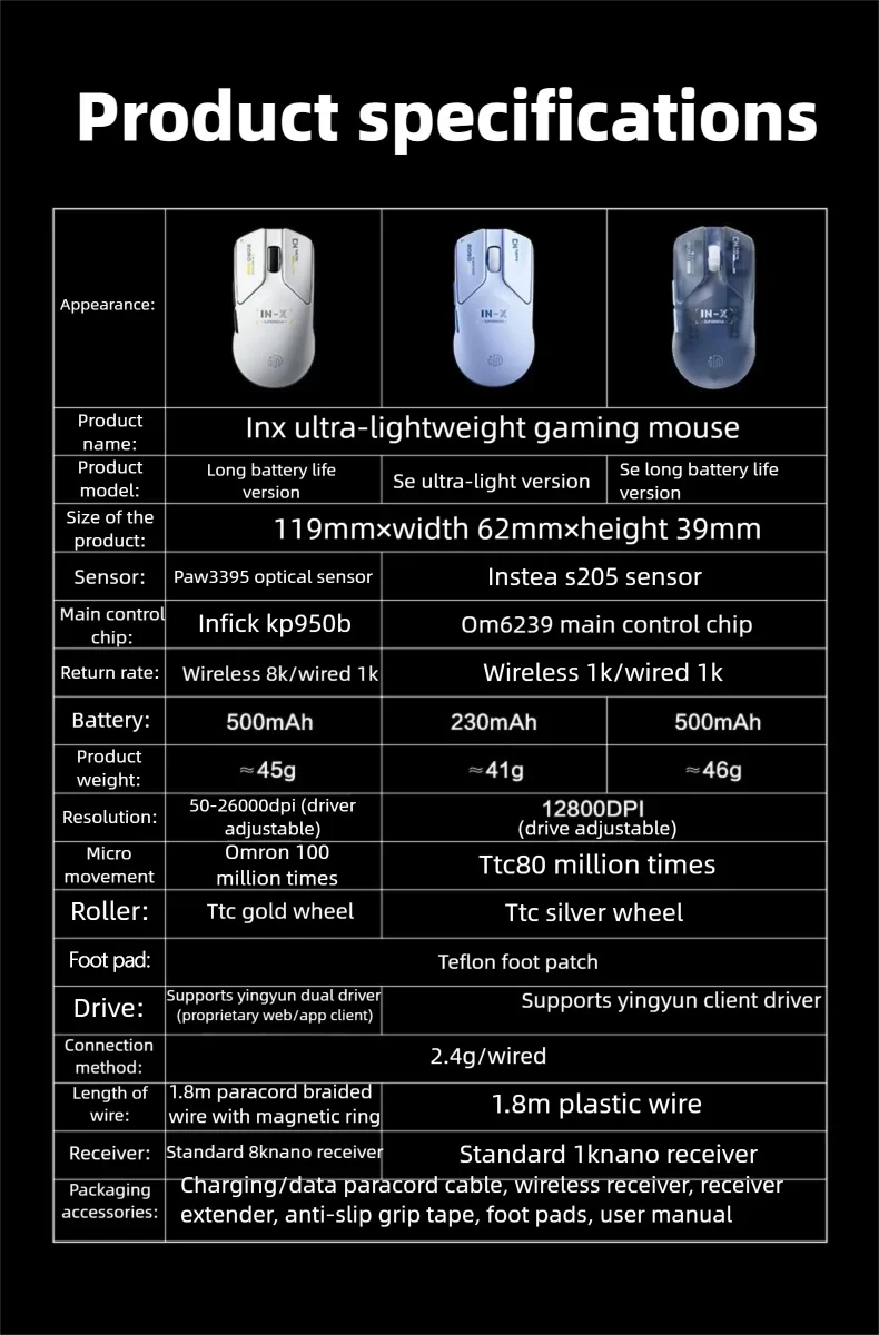 Resolution:26000DPI(INPHIC driver software adjustable)