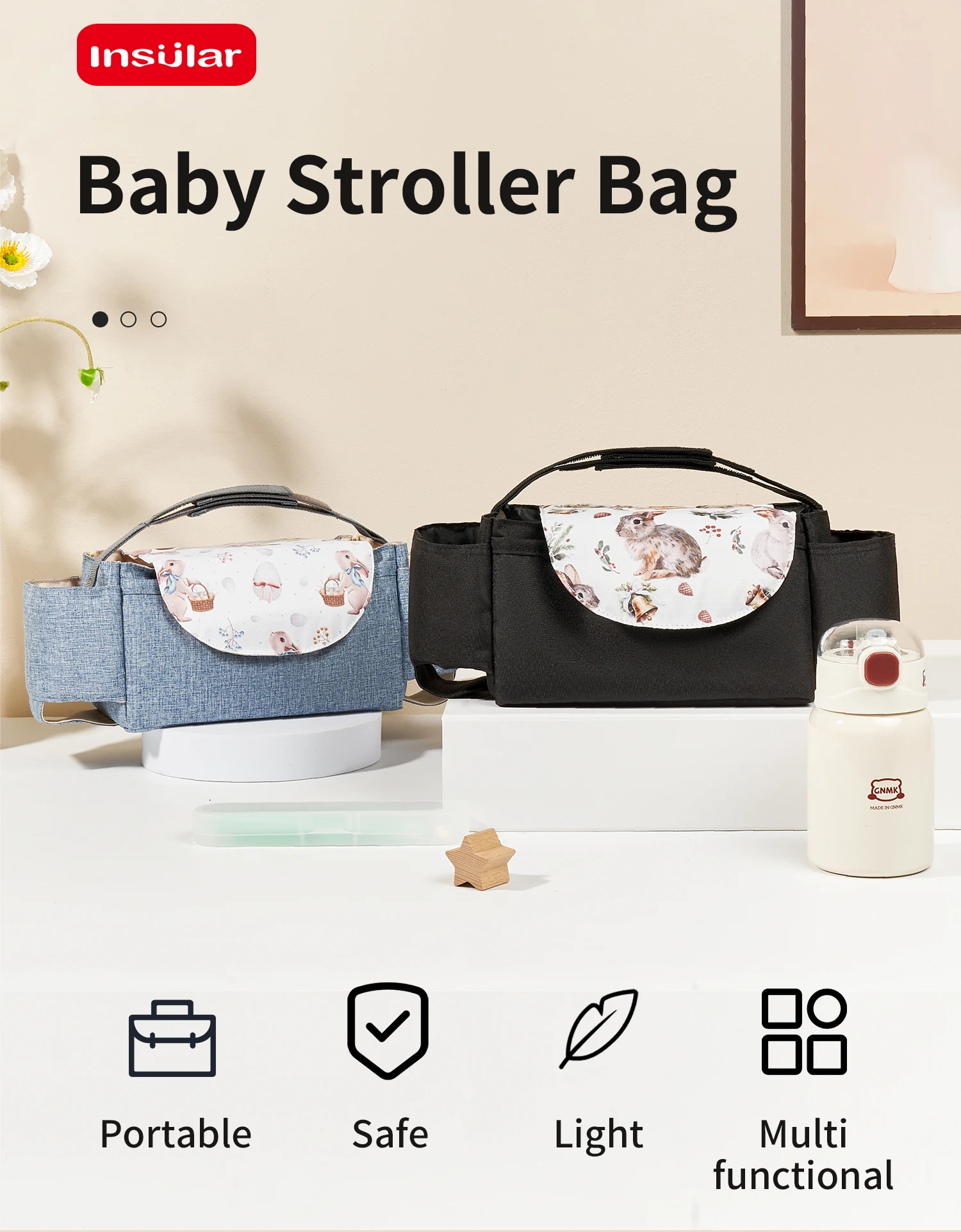 INSULAR Baby Stroller Bag Mommy Packs Stroller Hanging Bags Infant Diaper Nappy Packets Feeding Bottle Sacks Portable Waterproof