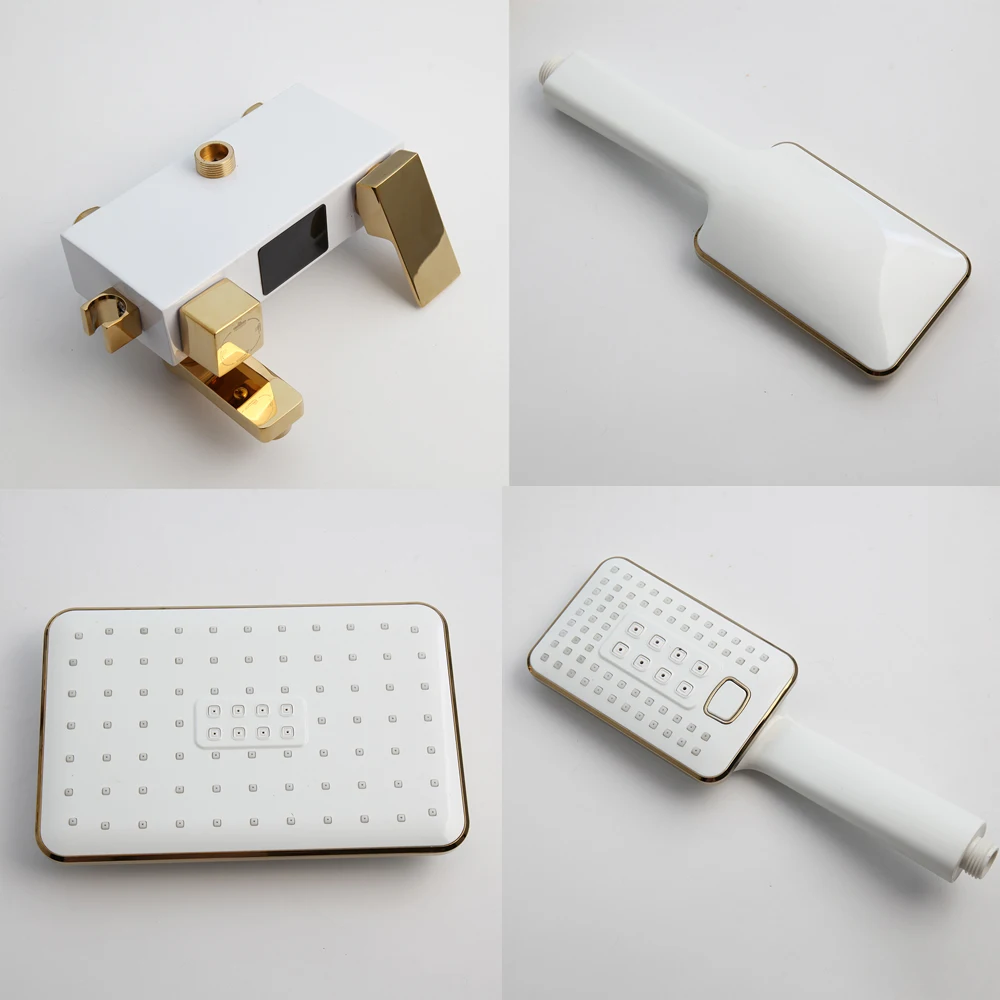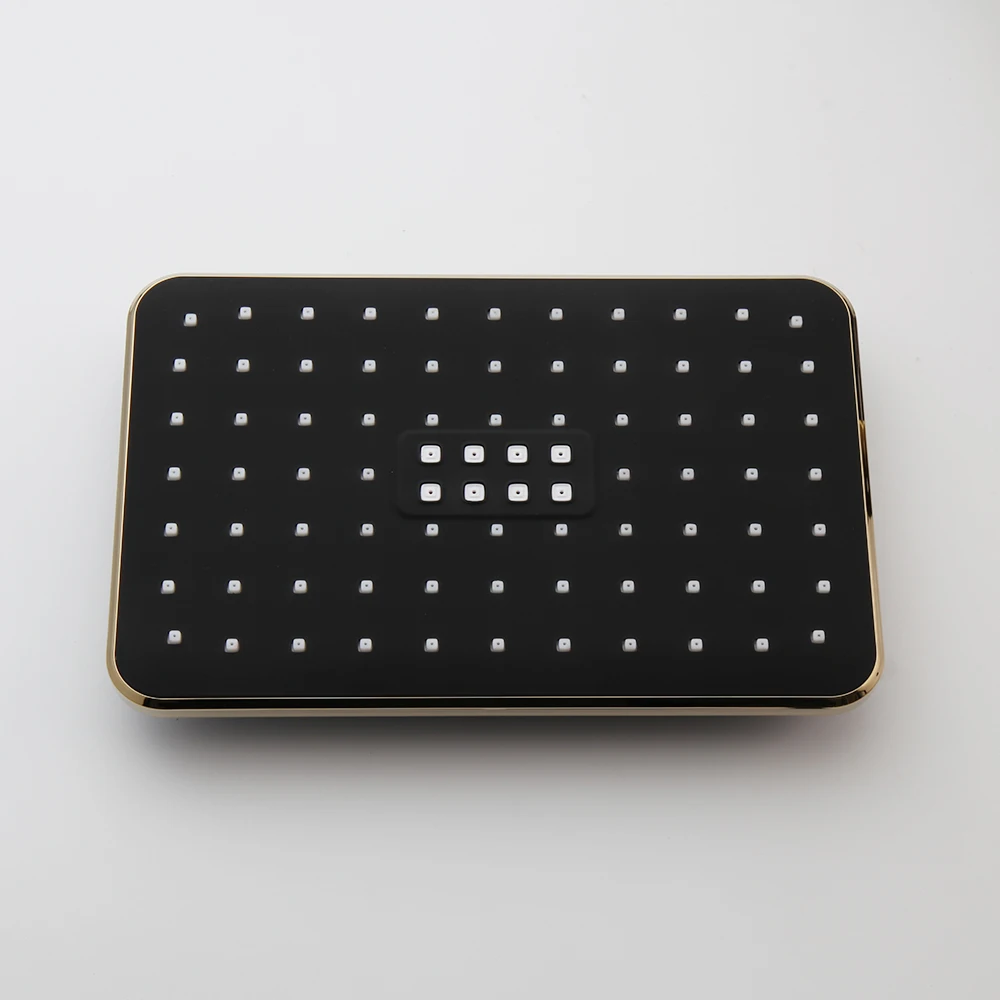 【Shower Set】The main body of this hot and cold shower system is made of high-quality brass, which is durable and easy to clean. LED digital temperature display, real-time detection of water temperature. The black glass panel of the main body is designed with linear ambient light, embellishing the blue light atmosphere when bathing, and safe water and electricity technology.