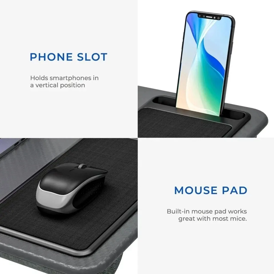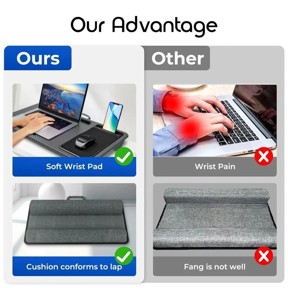 Lap Desk is a multifunctional work platform with a perfect ergonomic design. Every detail will ensure you can have a comfortable posture while working or studying with your laptop at home on sofa and in the office or while traveling.