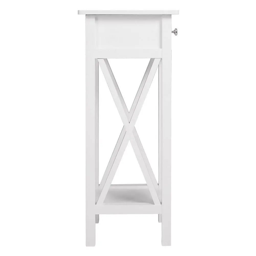 With an elegant, pared-down look with x-shaped side frames and a slender drawer with a simple round metal handle, our vintage console table is the perfect way to enrich your foyer decoration.