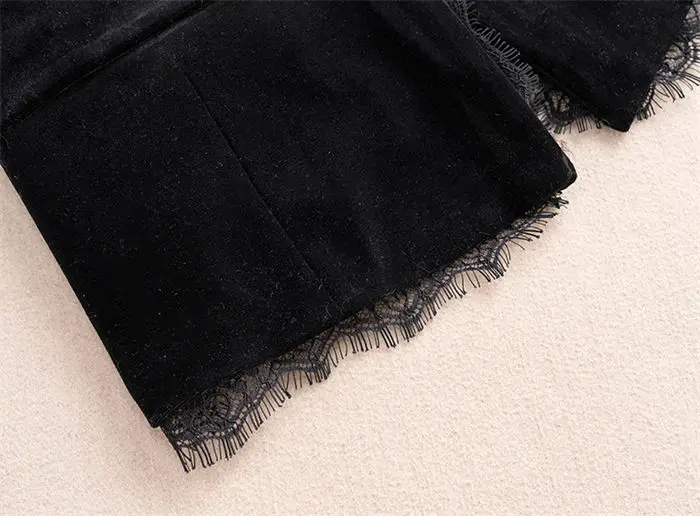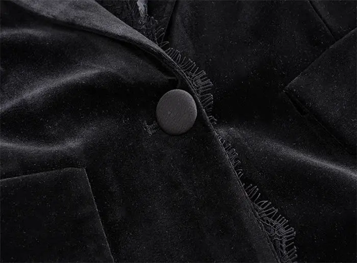 Luxury Women’s Black Velvet Blazer Jacket with Gold Accents & Lace Trim | Spring Autumn Cropped Suit Top Outerwear G872
