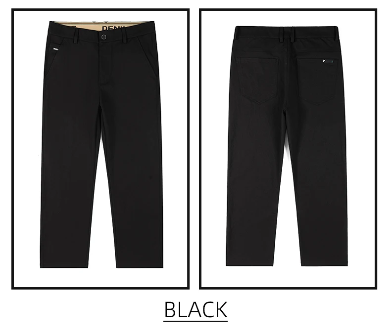 The front and back pockets are equipped with identification labels for a fashionable and minimalist look, while the fly features a button-and-zip design that ensures stability and easy on/off.