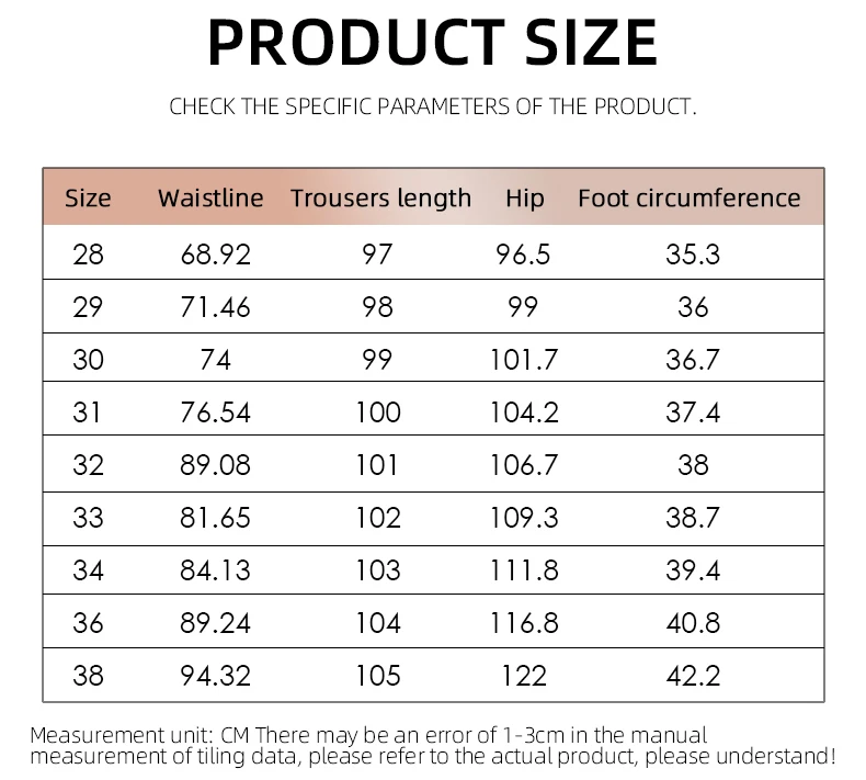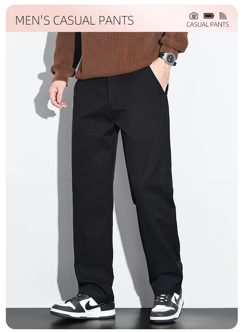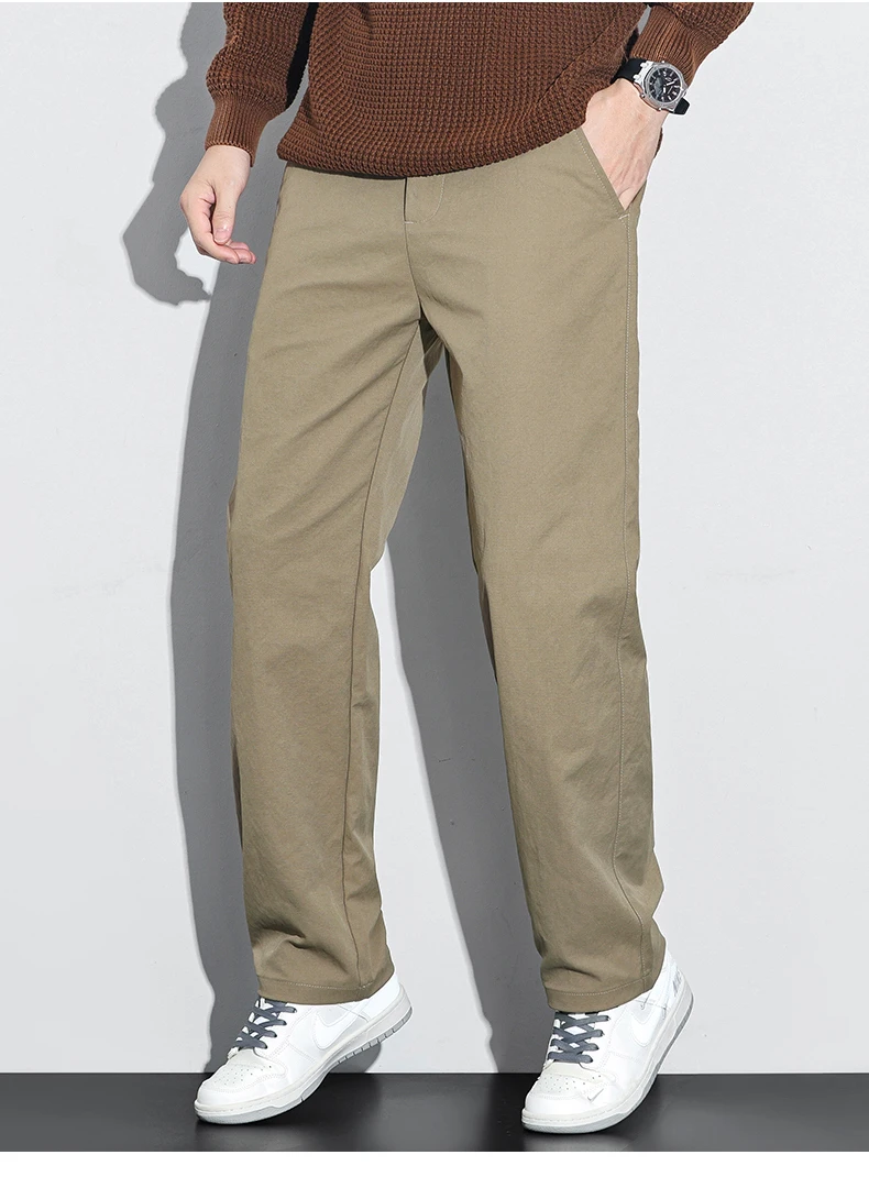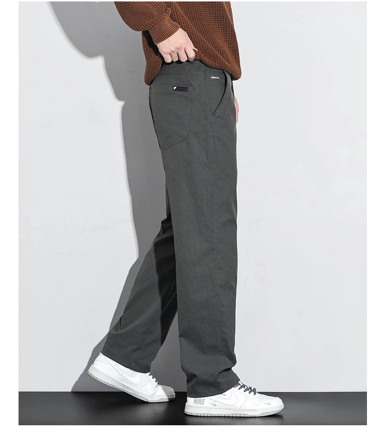 Available in colors including black, off-white, light army green, and khaki, with size options ranging from 28 to 38. It delivers a tailor-made wearing experience, making it suitable for people with wider waistlines.