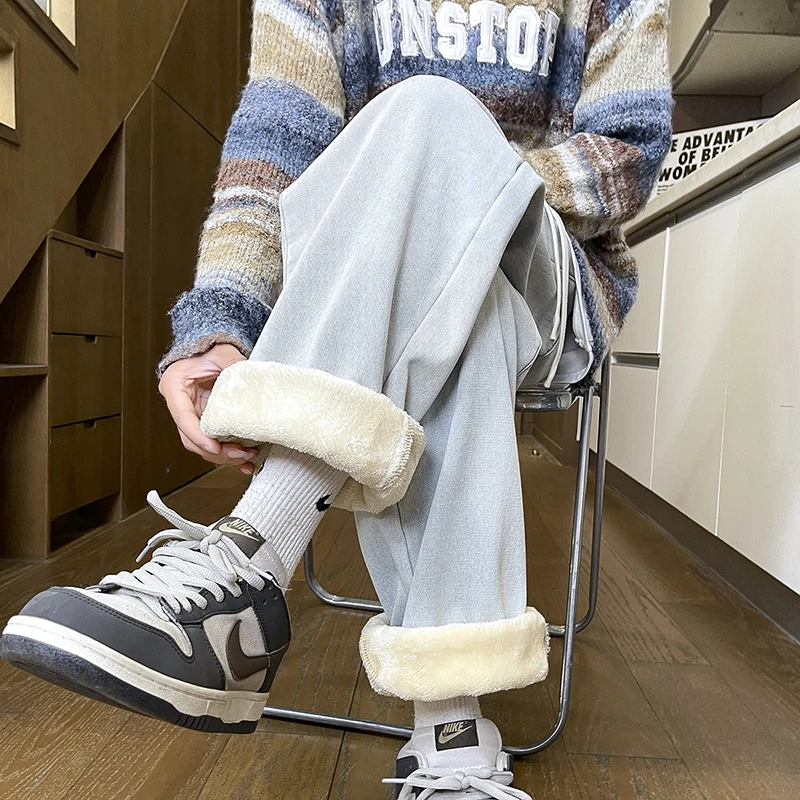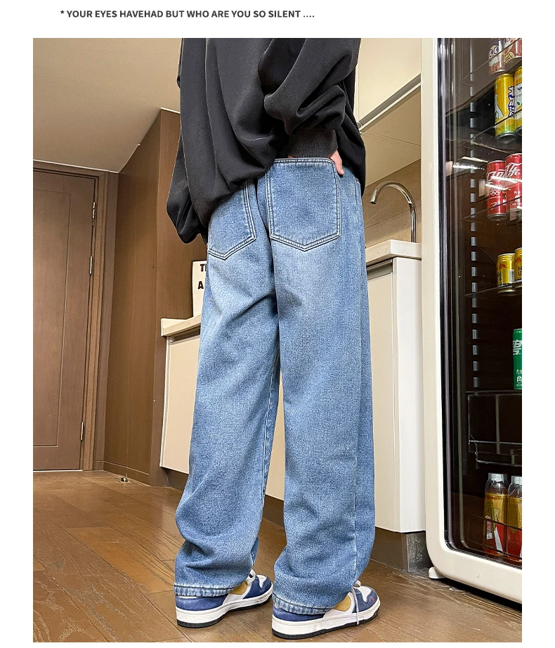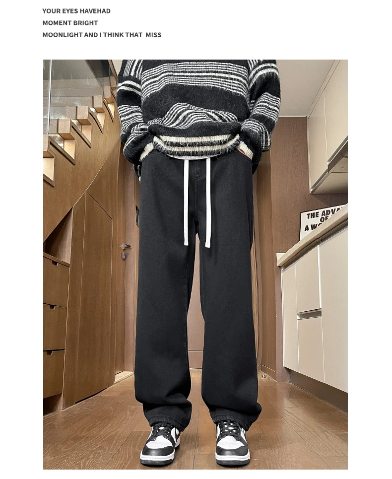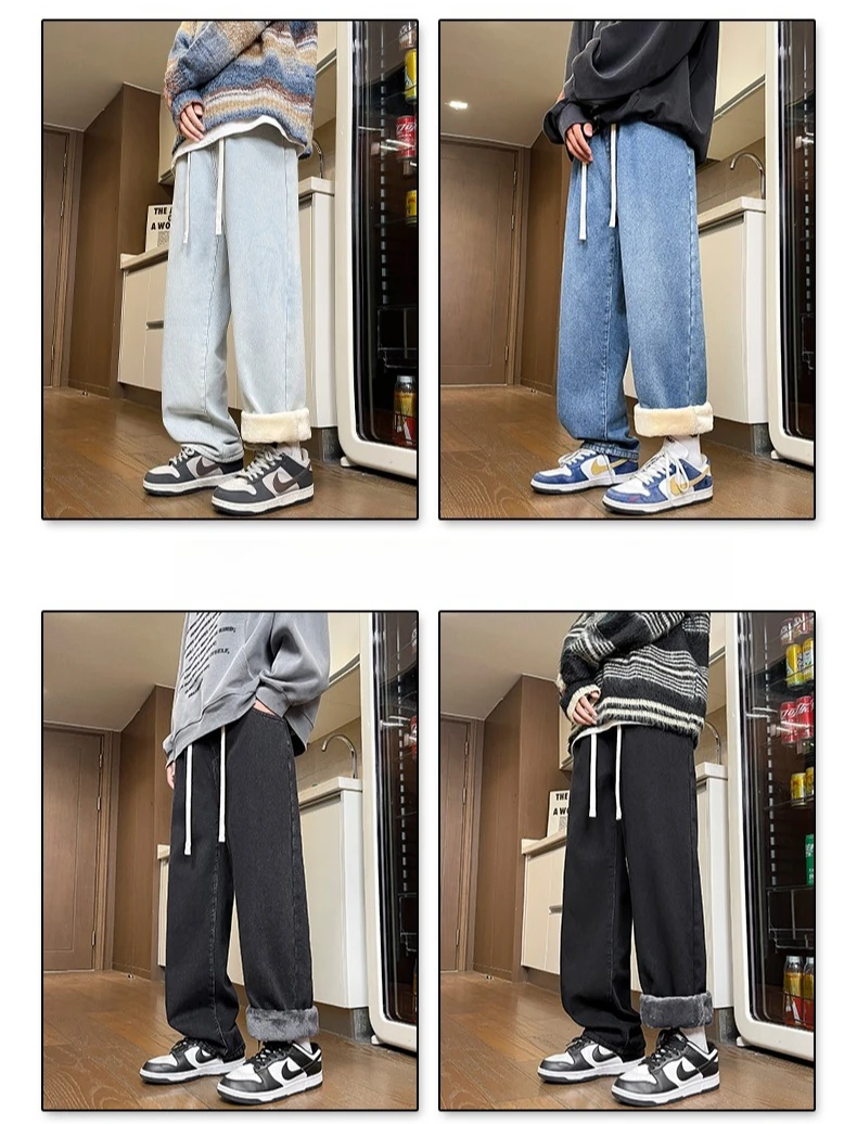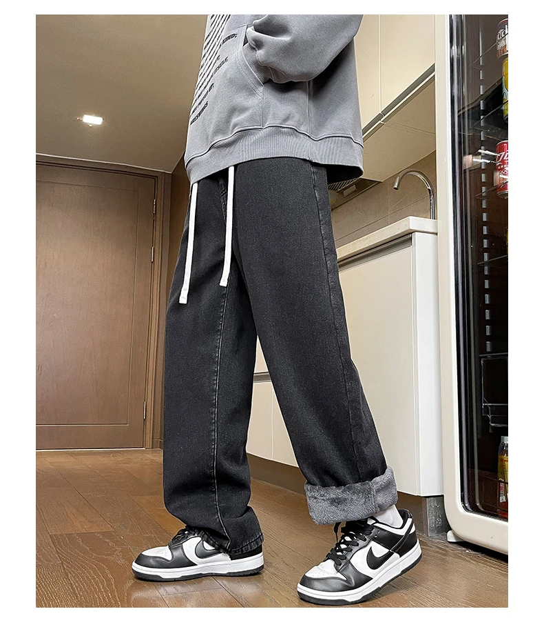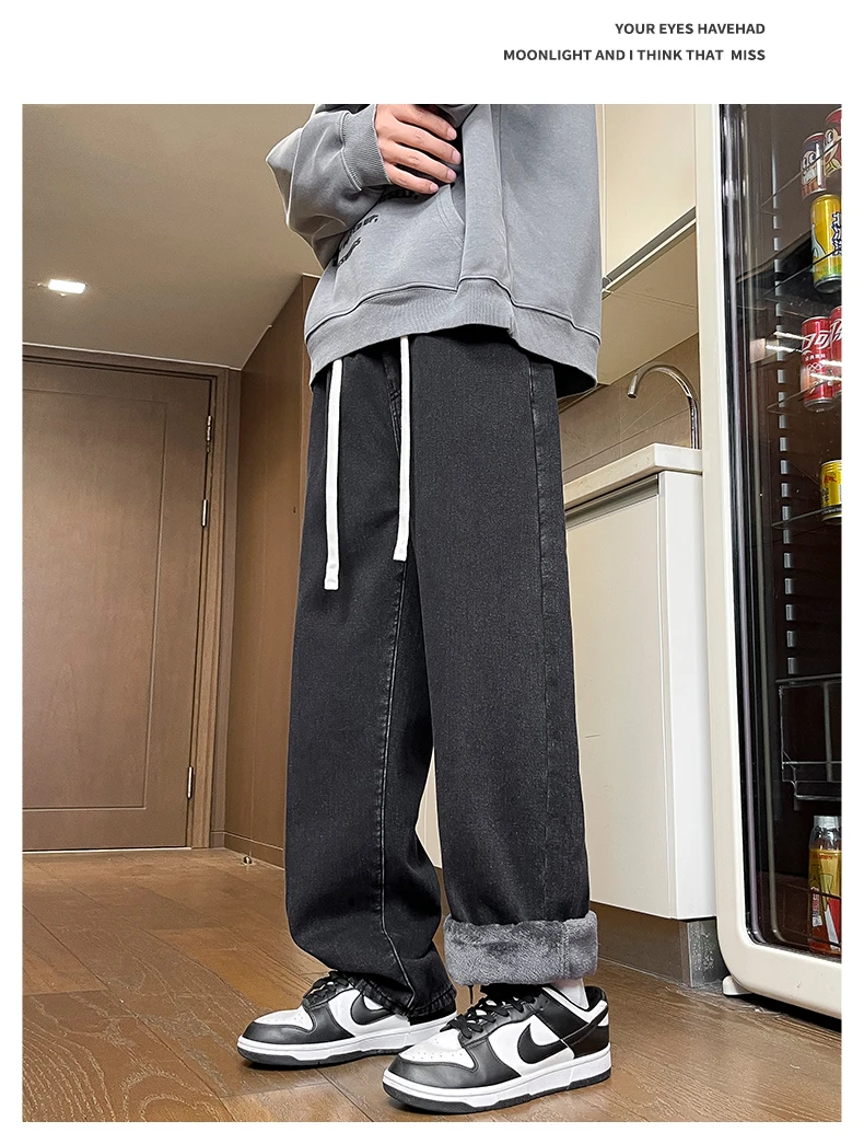 Men’s Thick Fleece Loose Jeans Korean Street Baggy Warm Premium Velvet Straight Leg Wide Leg Pants Winter Lined Wool Hot Denim