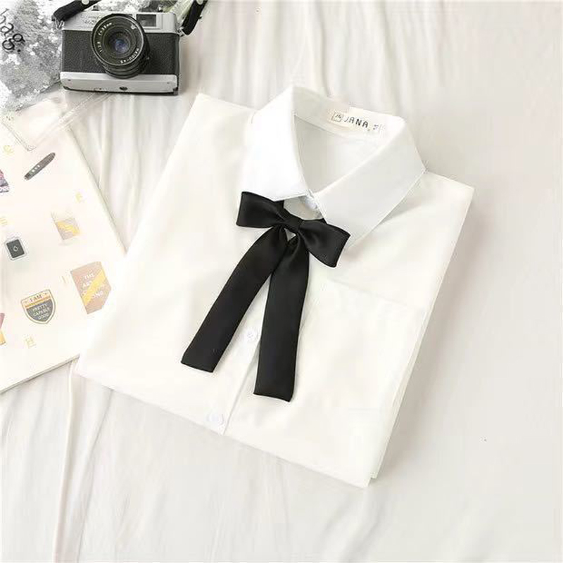 MEXZT White Shirts Women Harajuku JK Tie Bow Long Sleeve Blouses Students Preppy Korean Fashion All Match Tops Spring Autumn New