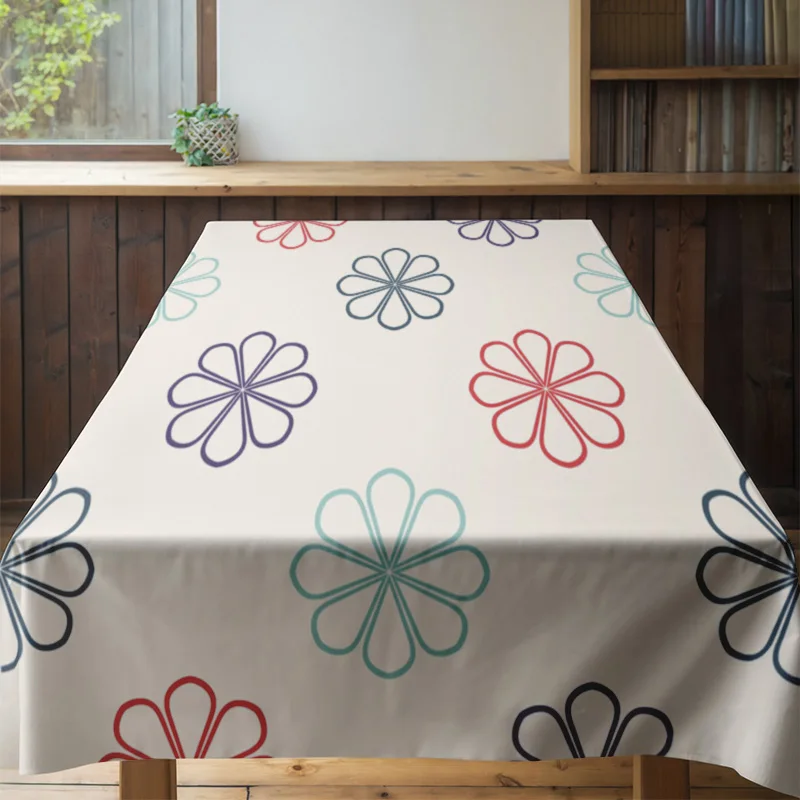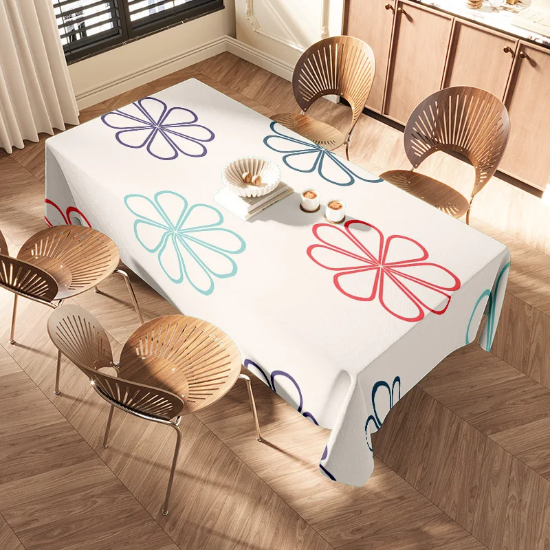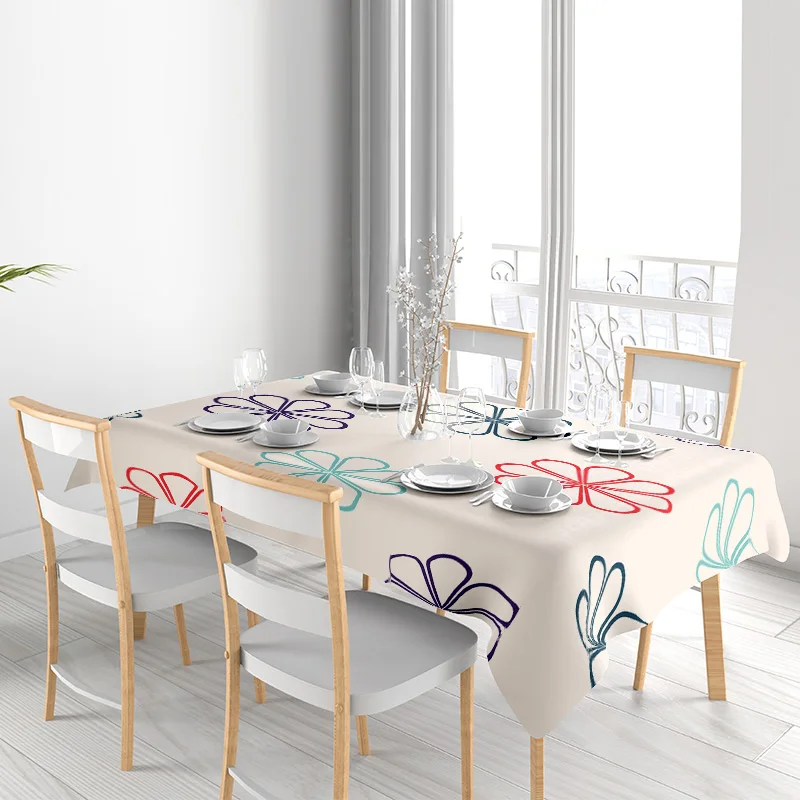 Modern Dining Table with Flower-Printed Tablecloth Elegant Wooden Chairs Set for Family Meals