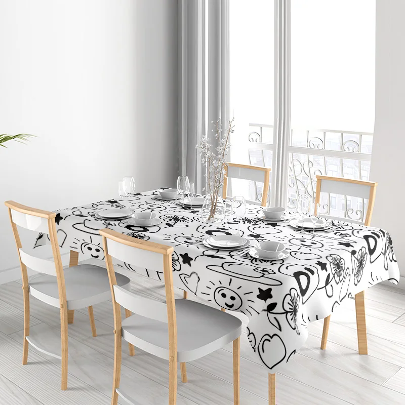 Be the first to review “Modern Dining Table with Unique Cartoon Print Cover Set for Four People Matching Chairs Included”
