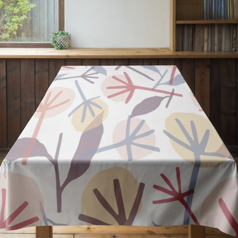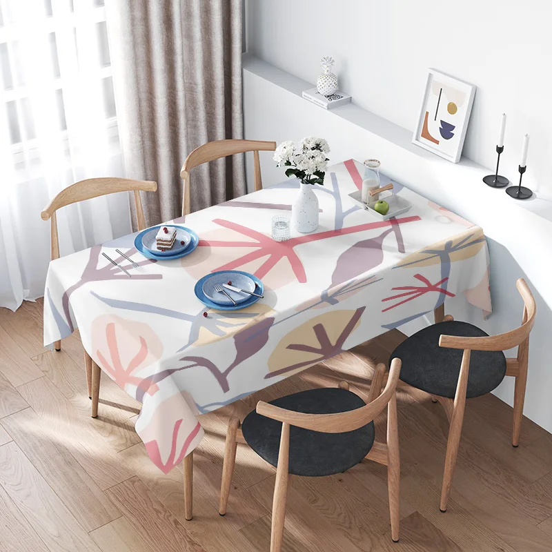 Modern Floral Tablecloth with Wooden Chairs Perfect for Dining Room Decor