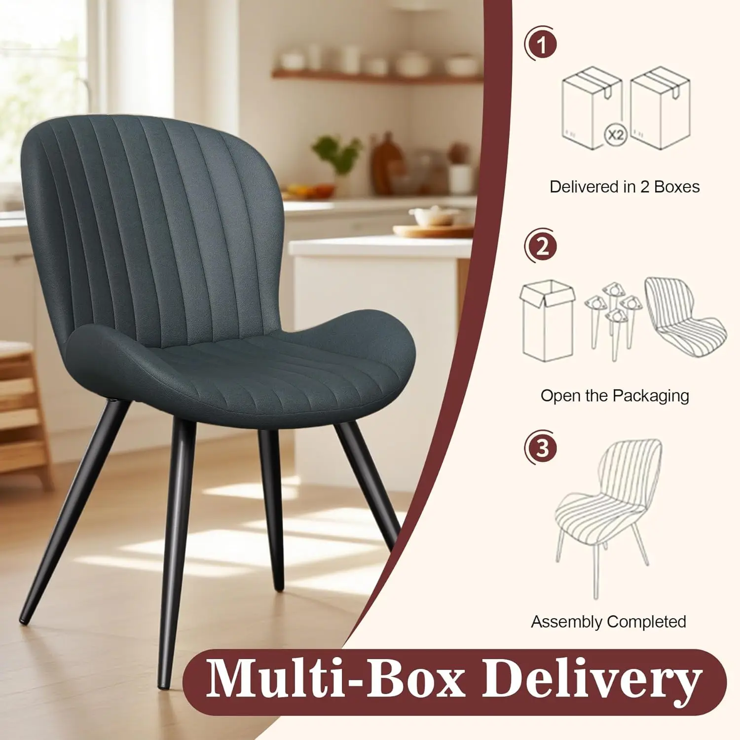 Modern Upholstered Dining Chairs Set of 2 – Metal Legs, Padded Side/Kitchen Chairs, Comfy Backrest, for Dining Room or Kitchen