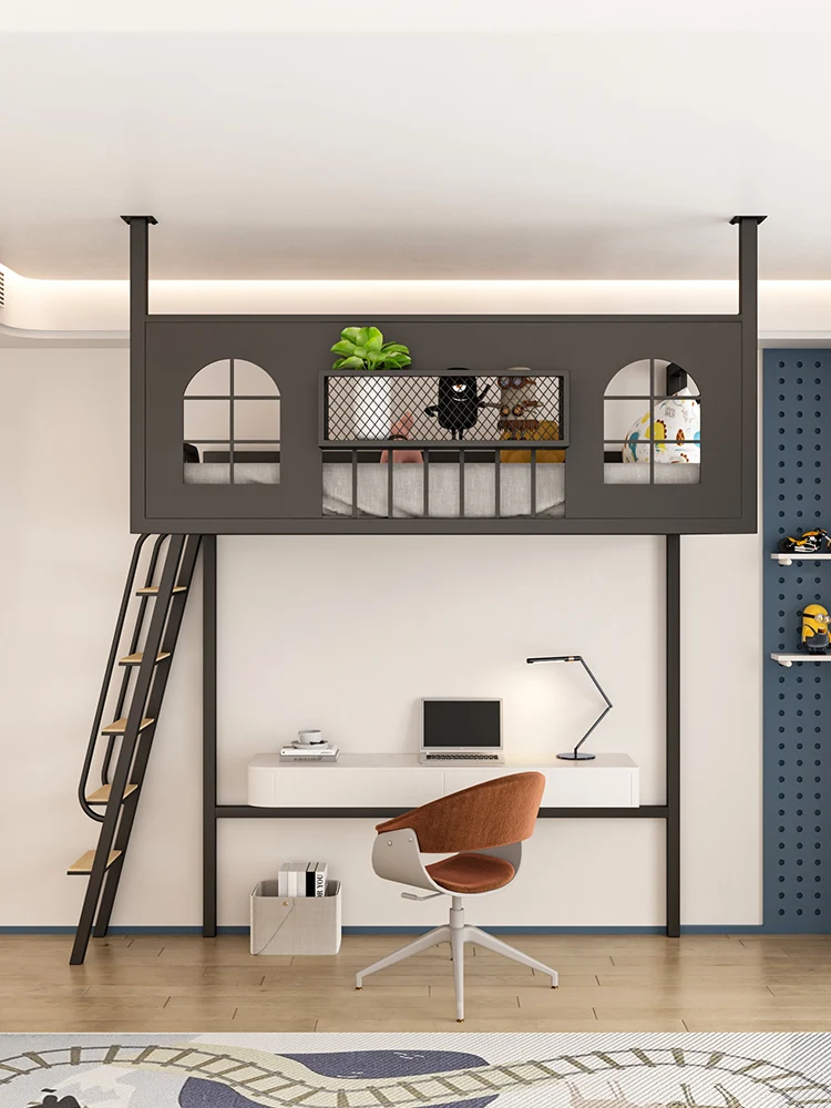 Modern wrought iron loft bed space-saving elevated bed floor empty simple small apartment wall-mounted frame empty hammo