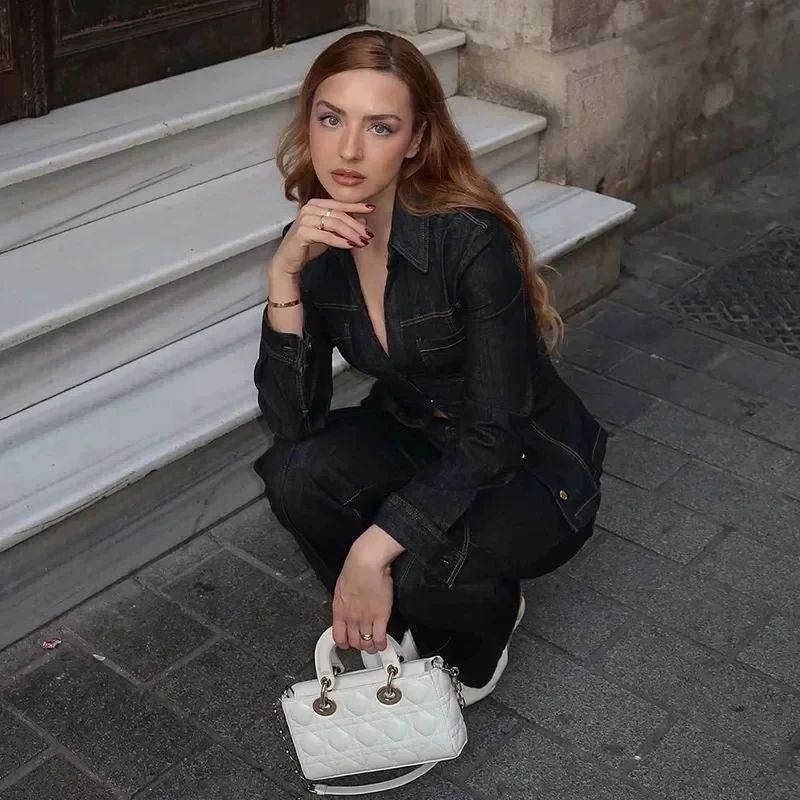 Be the first to review “MUJER 2025 Denim Women’s Pants Sets Button up Shirt Two Piece Outfits Woman High Waist Women’s Trousers Suits Spring Lady Sets”