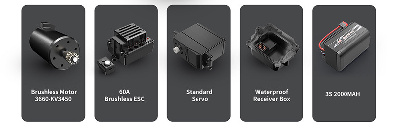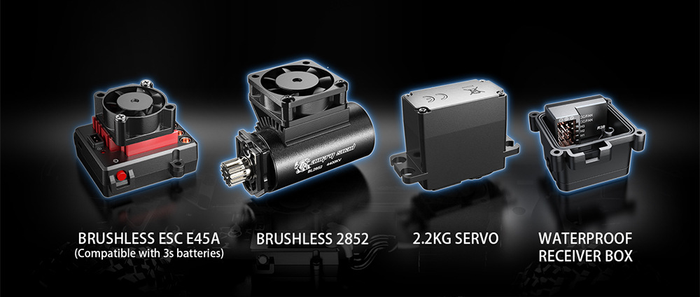 3. 45A brushless ESC + 2845 four-pole brushless motor;