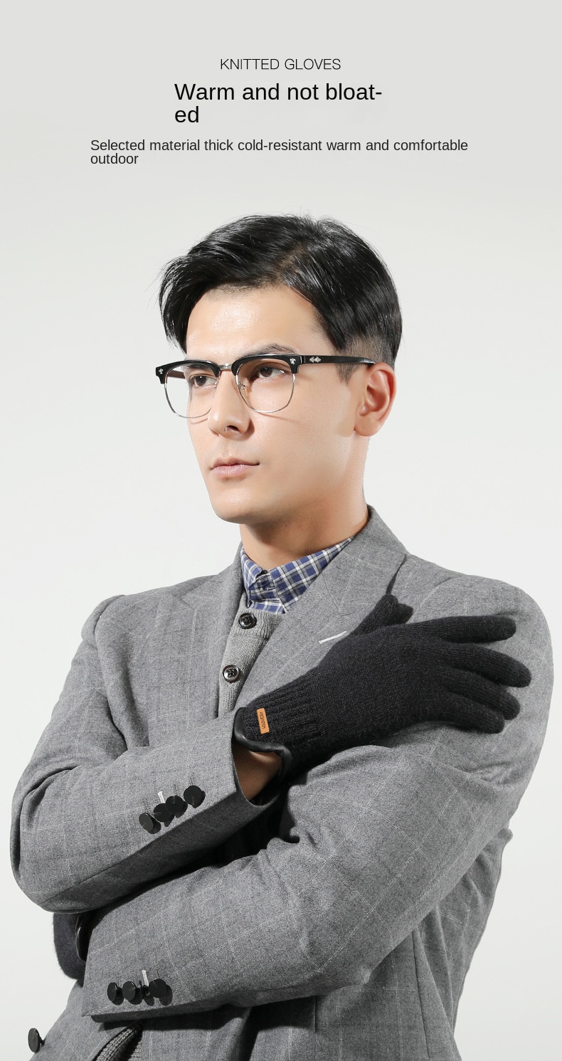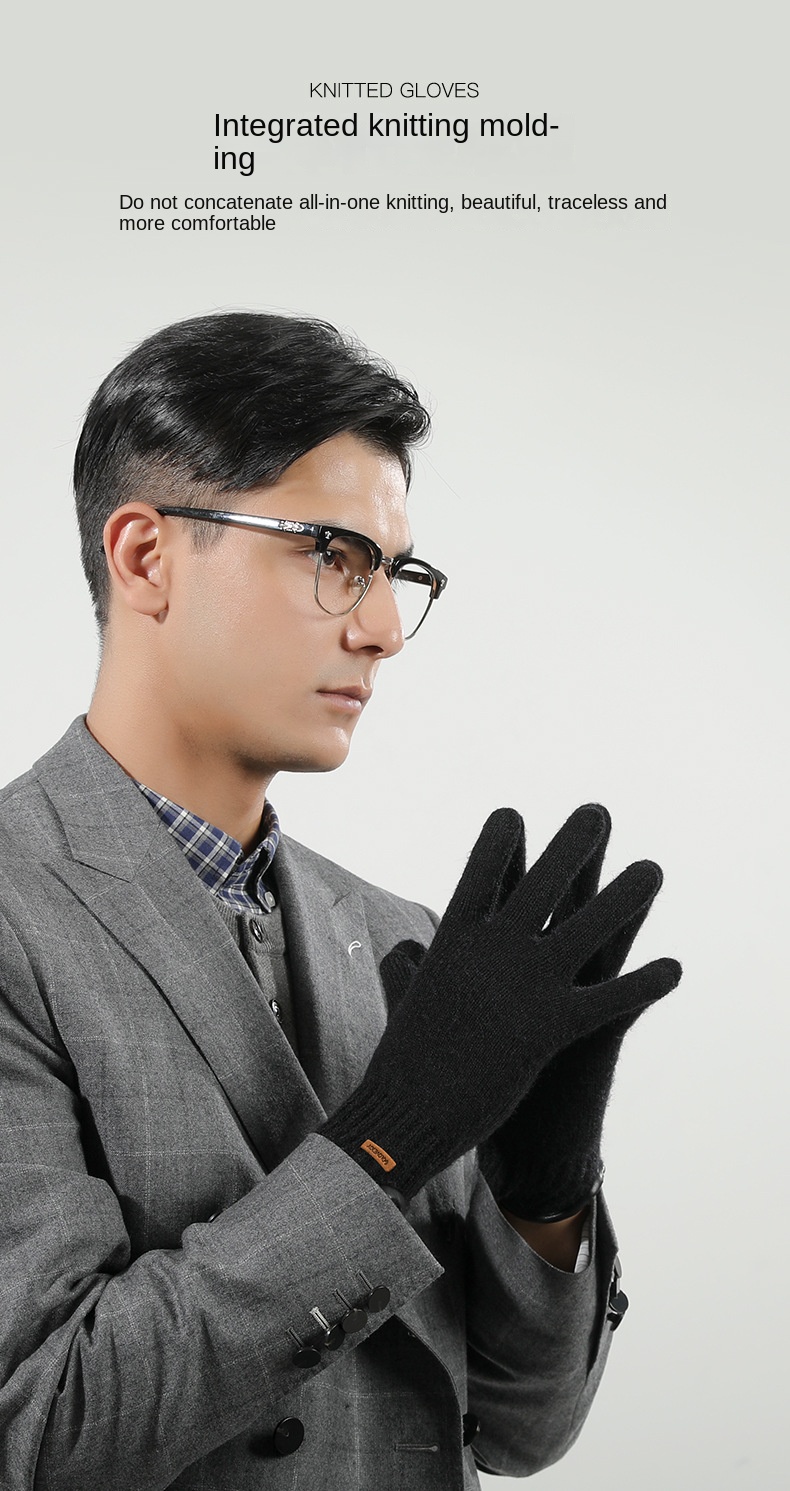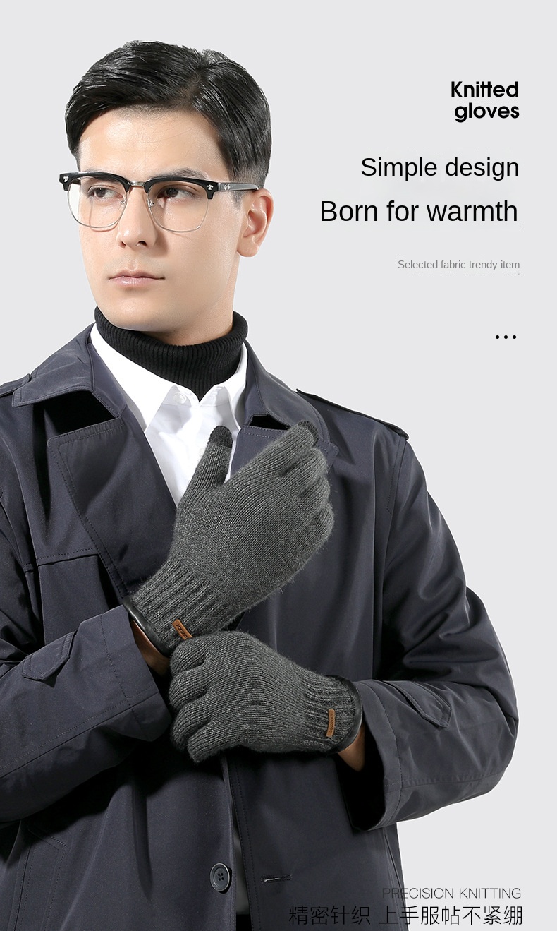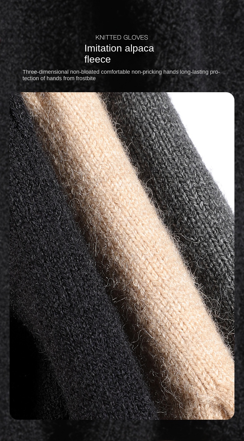 New Winter Imitation Camel Fleece Warm Gloves for Men’s Outdoor Touch Screen High Elastic British Business Knitted Woolen Gloves