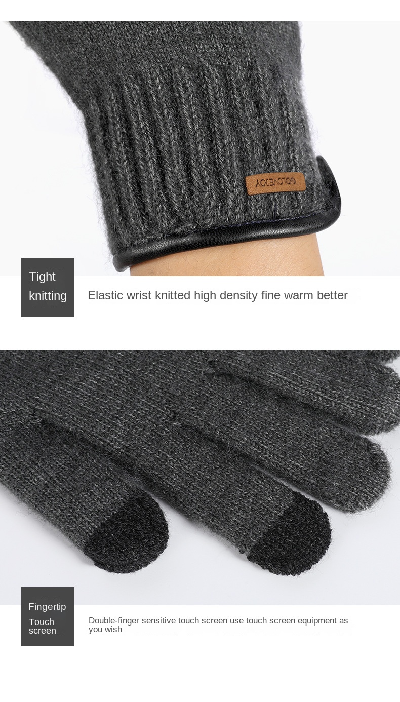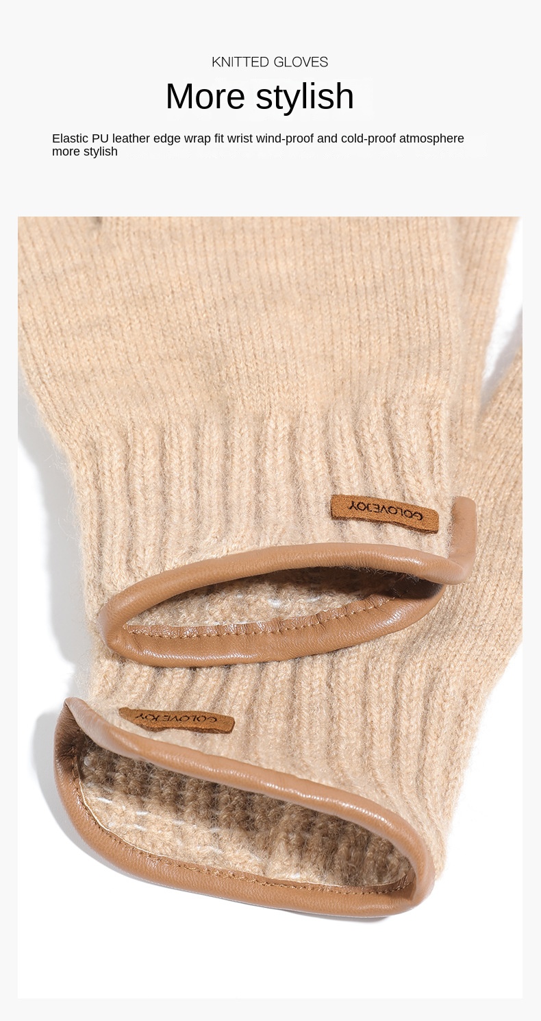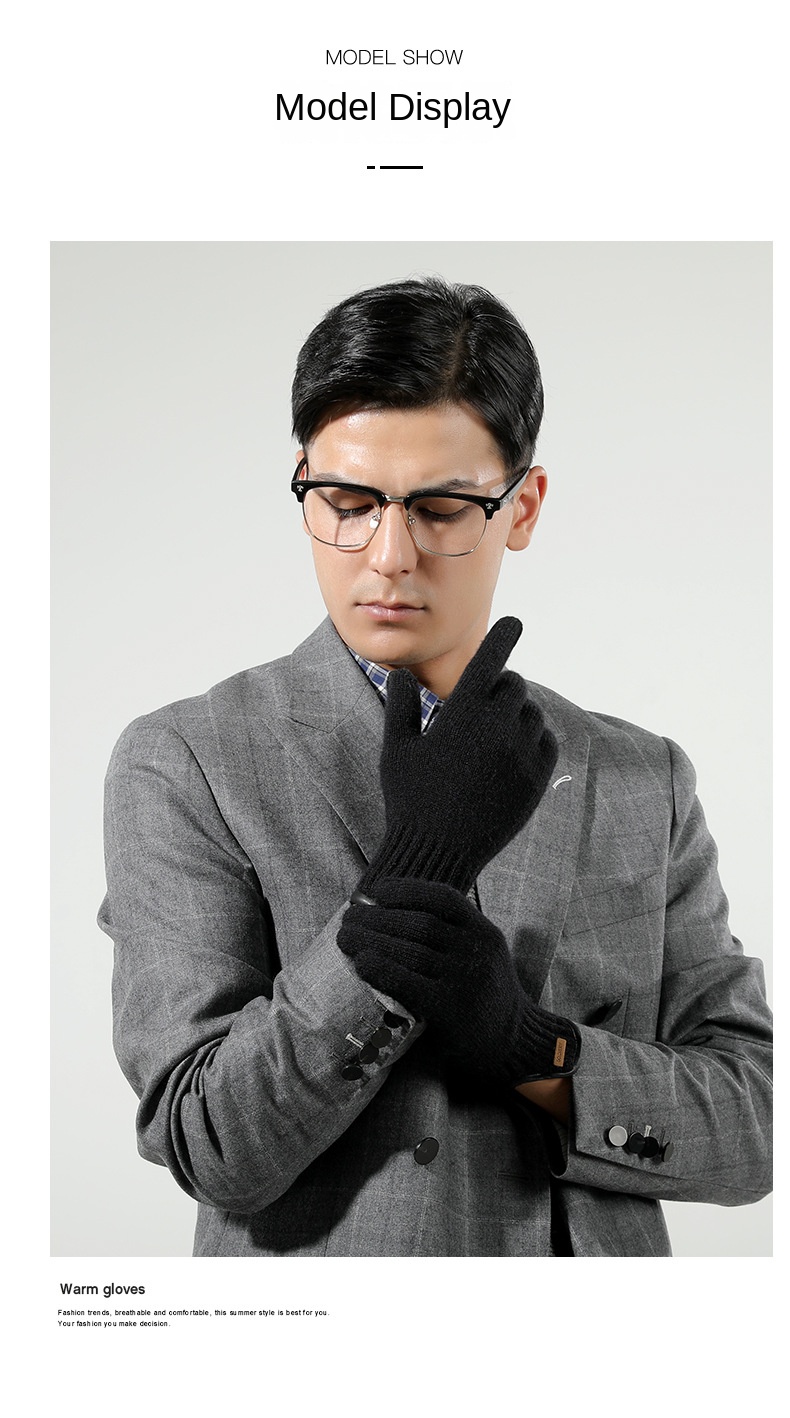 New Winter Imitation Camel Fleece Warm Gloves for Men’s Outdoor Touch Screen High Elastic British Business Knitted Woolen Gloves