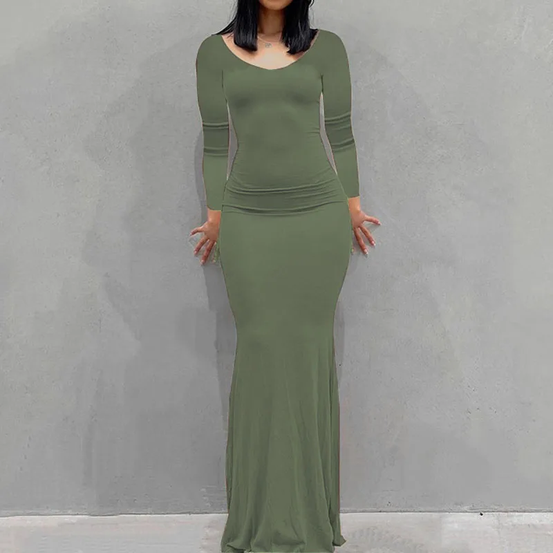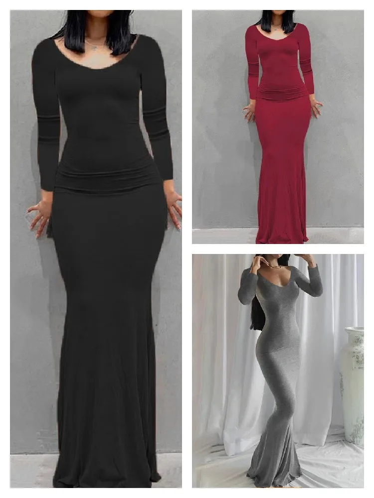 New women’s dress long skirt casual slim long-sleeved home dress