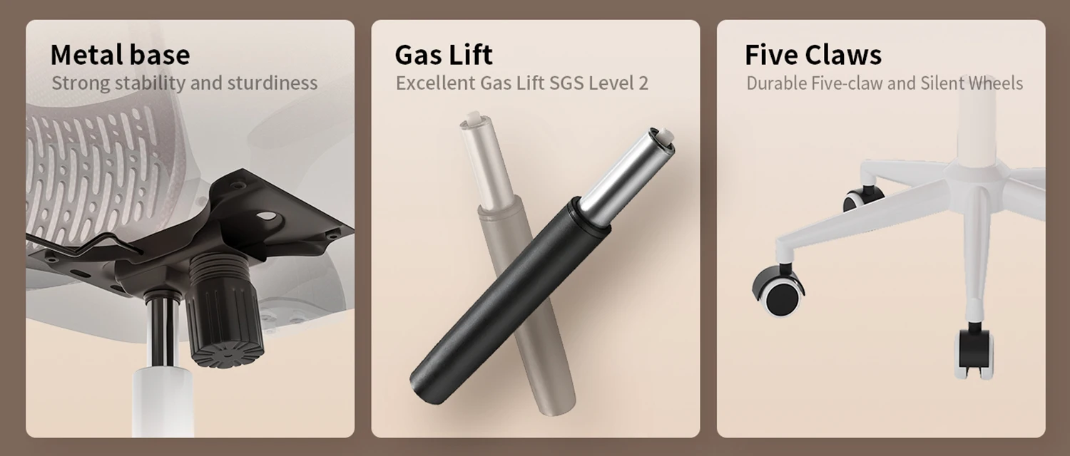 — Equiped with a 2-SGS certified gas lift and a heavy-duty metal base with a five-claw design, this chairman’s long-lasting stability and durability, far superior to traditional nylon or plastic bases.