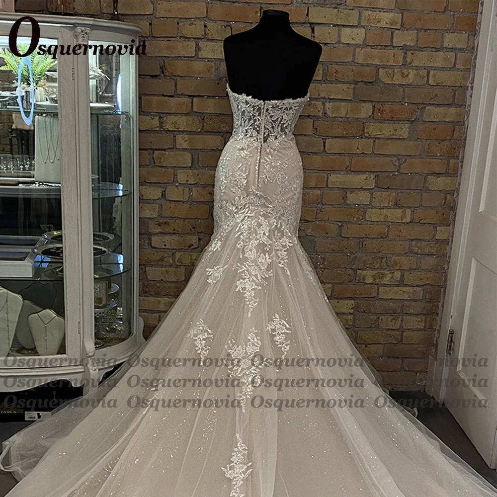Osquernovia Luxury Mermaid Wedding Dress 2024 Sequins Appliques Sweetheart Backless Glitter Tulle Real Picture Robe De Mariée