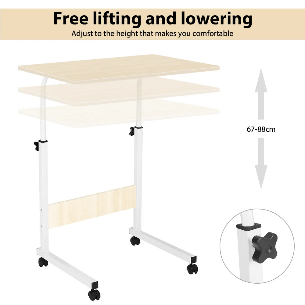 Portable Computer Table Height Adjustment Simple Desktop Laptop Table with wheels Movable Overbed Desk