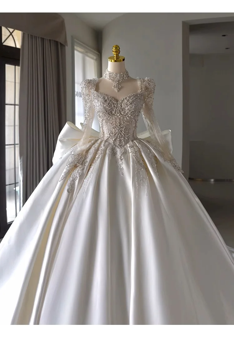 PRXD-2323#French Retro Satin Dresses For Women 2025 New Bride Luxury Trailing and Floor-Length Wedding Dress Gift Accessories