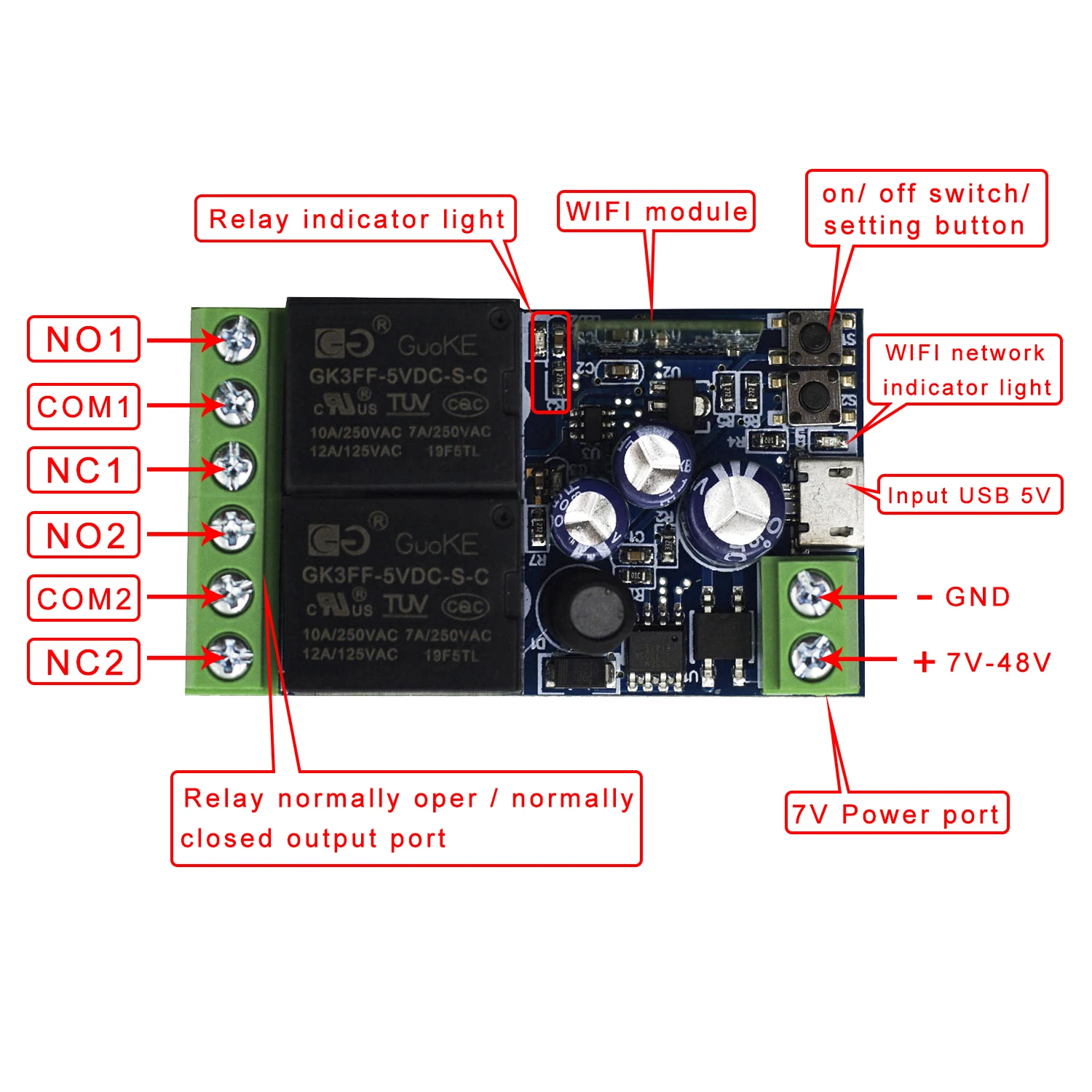QIACHIP WiFi Smart Switch 10A DC 7-48V USB 5V 2 CH 2.4G RC with eWelink app Suitable for Curtain Motors Garage Doors LED Lights
