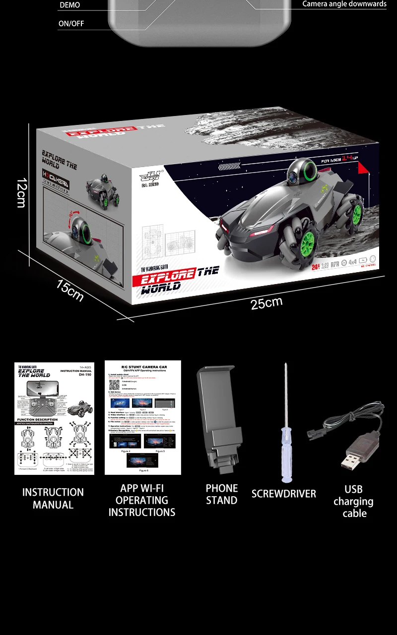 RC Car 1:20 With Video 2.4G WIFI FPV HD Camera Car 360° Rotation Stunt Camera Car Kids boy toys