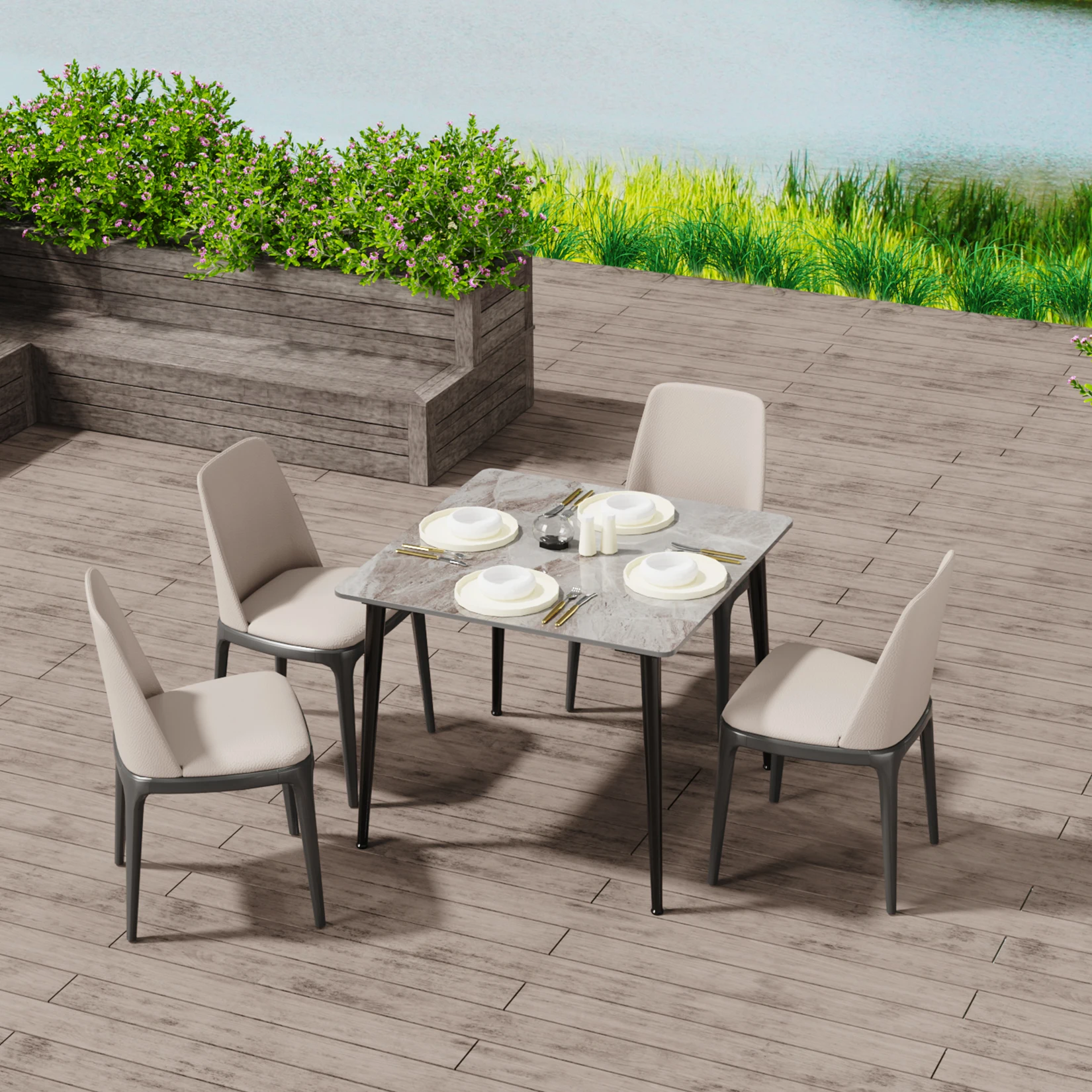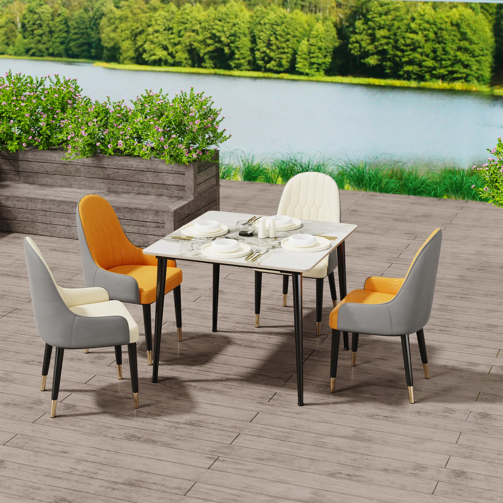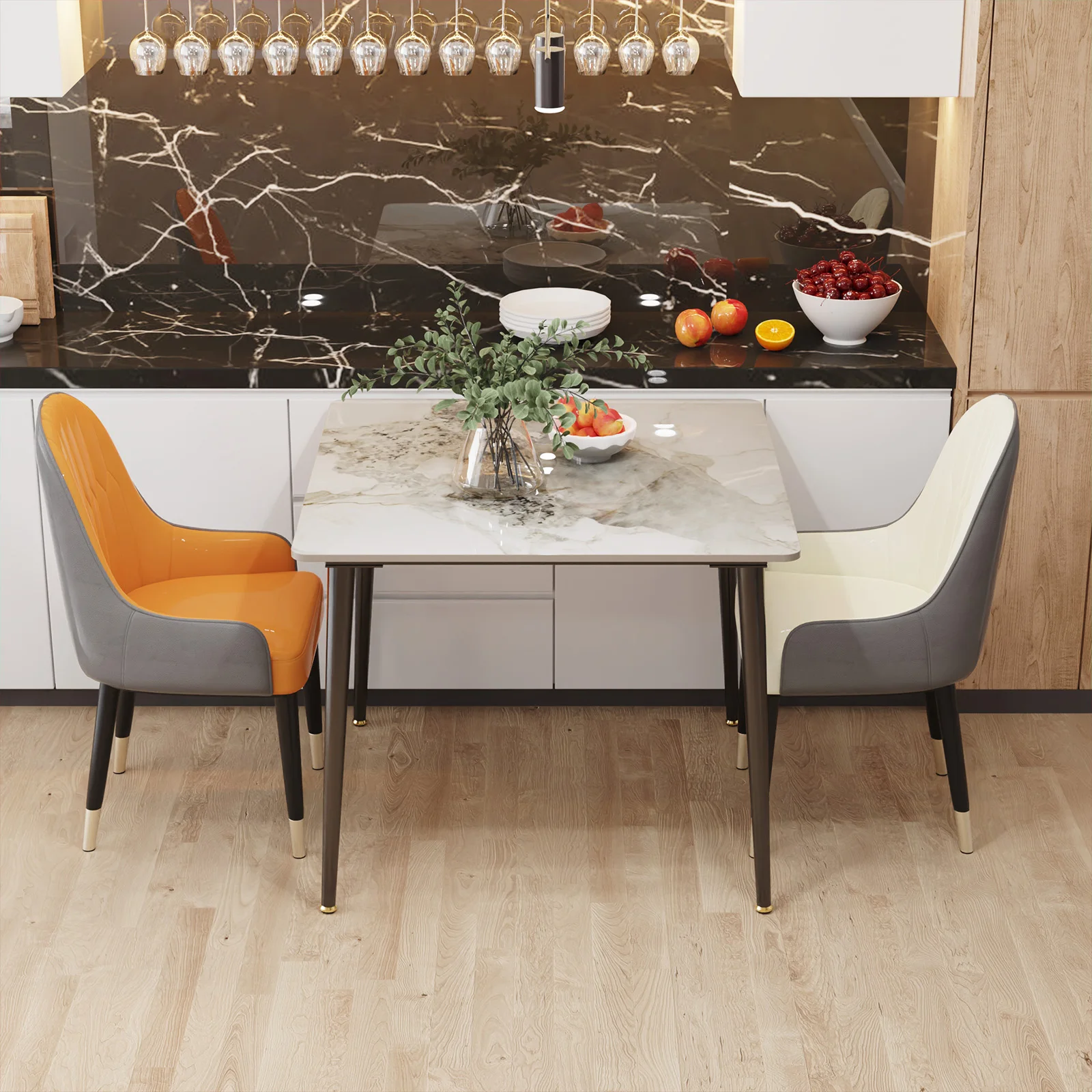 【Durable Dining Table】Kitchen dining table crafted from black painted metal legs with sintered stone table top, resistant to stain and dirt, heat and cold damage, waterproof with an absorption level near zero, easy to clean the surface if you accidentally knocked over the coffee or milk