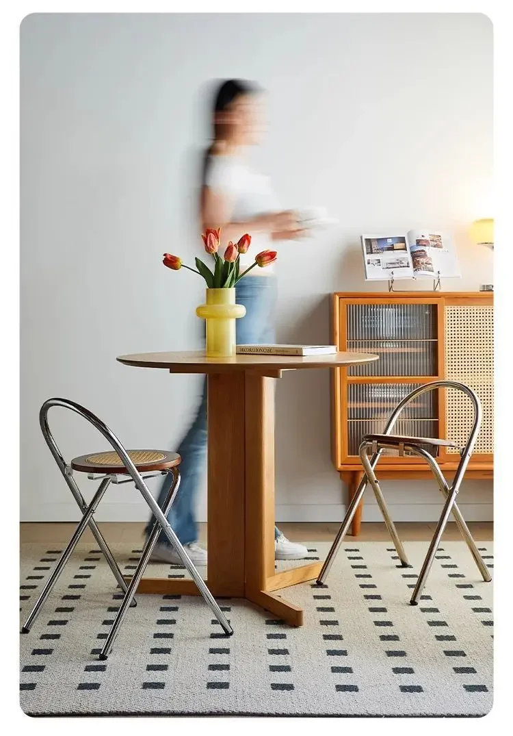 Retro Dining Chair, Chic Leisure Chair with Backrest for Home, Ideal for Light & Dark Decor Style, Foldable, Electroplated Frame