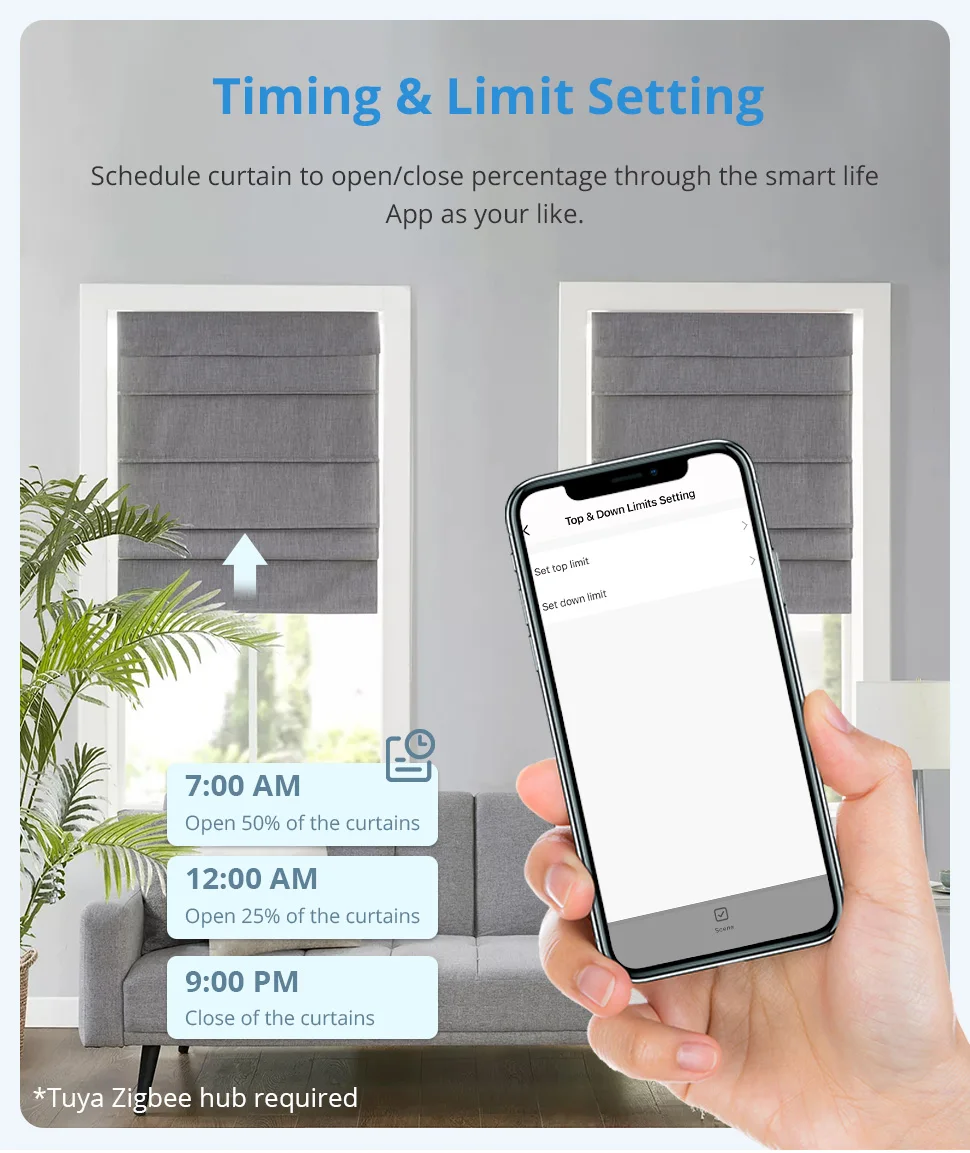 -The motor uses a Zigbee built-in lithium battery. Control is supported by the Tuya and Smart Life apps.