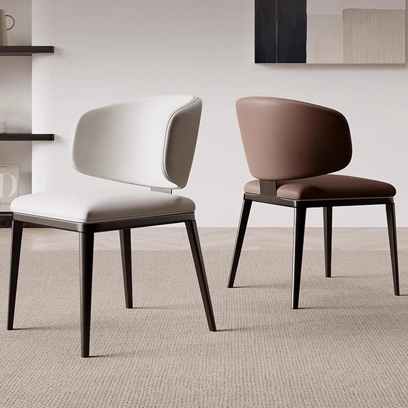Simple Home Dining Chairs Modern Soft Leather Cafe Chair with Curved Backrest Comfy Steel Leg Kitchen Living Room Dinner Chair