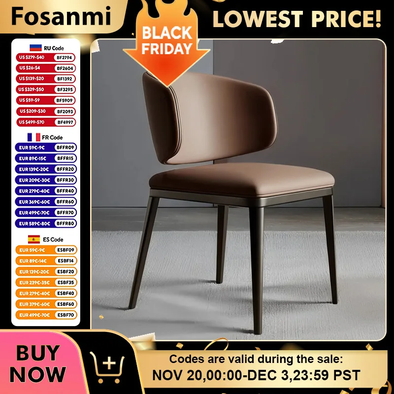 Minimalist Home Dining Chairs Modern Soft Leather Cafe Chair with Curved Backrest Comfy Kitchen Living DiningRoom Chair with Steel Legs