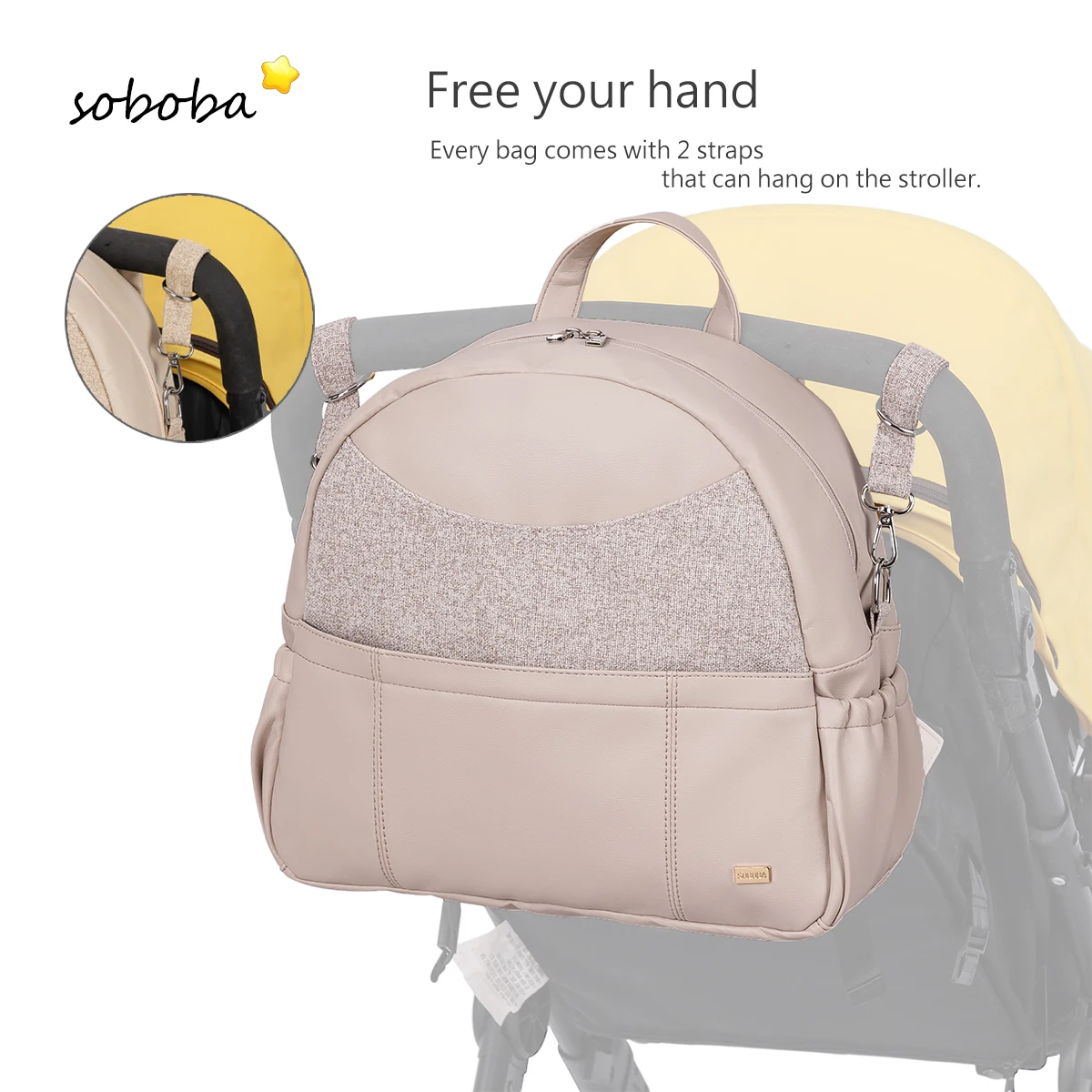 Featuring a secure zipper closure, the Soboba Diaper Bag keeps your items safe and sound during transit.