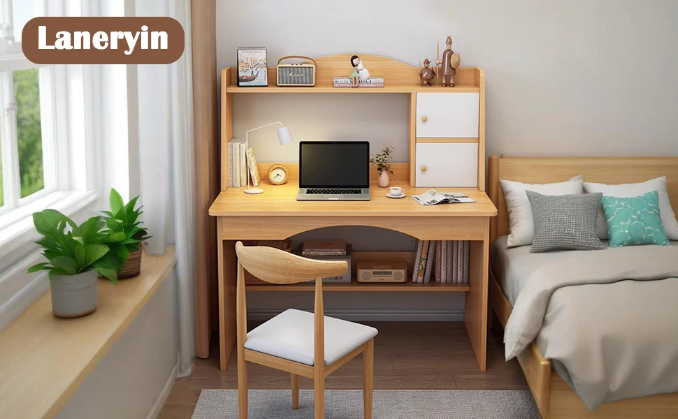 Wooden Computer Desk Double Cabinet Door with Storage Rack Simple Style Study Table Home Decoration For Bedroom and Bookroom