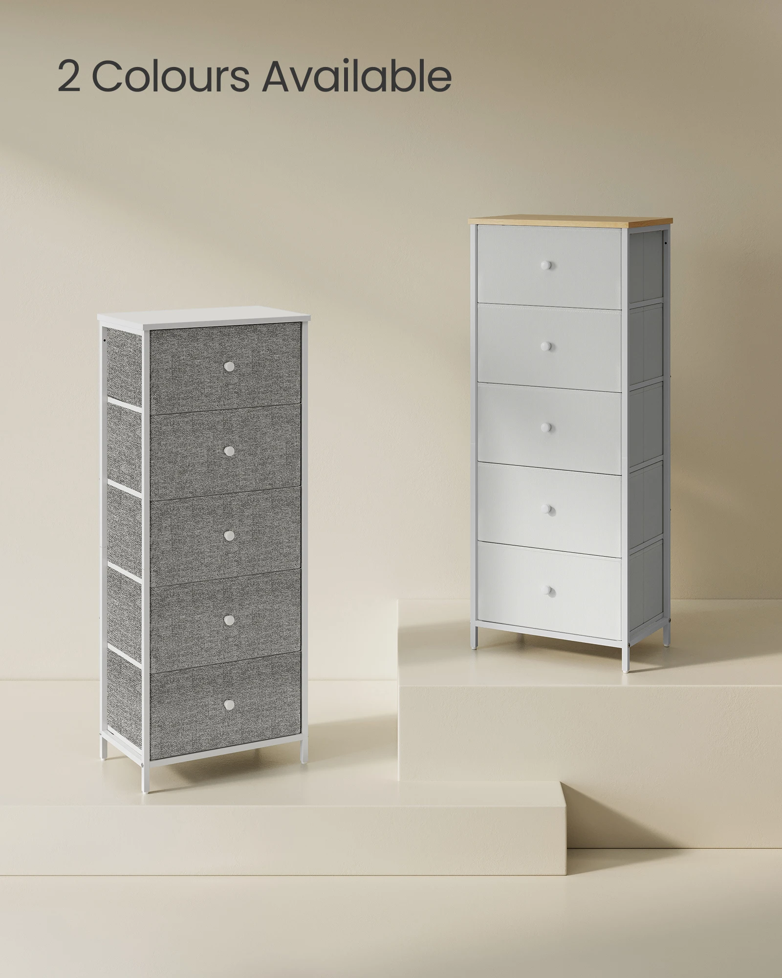 SONGMICS Chest of Drawers Bedroom, Drawer Storage Unit, Dresser with 5 Fabric Drawers, Metal Frame, Tall and Slim, for Closet