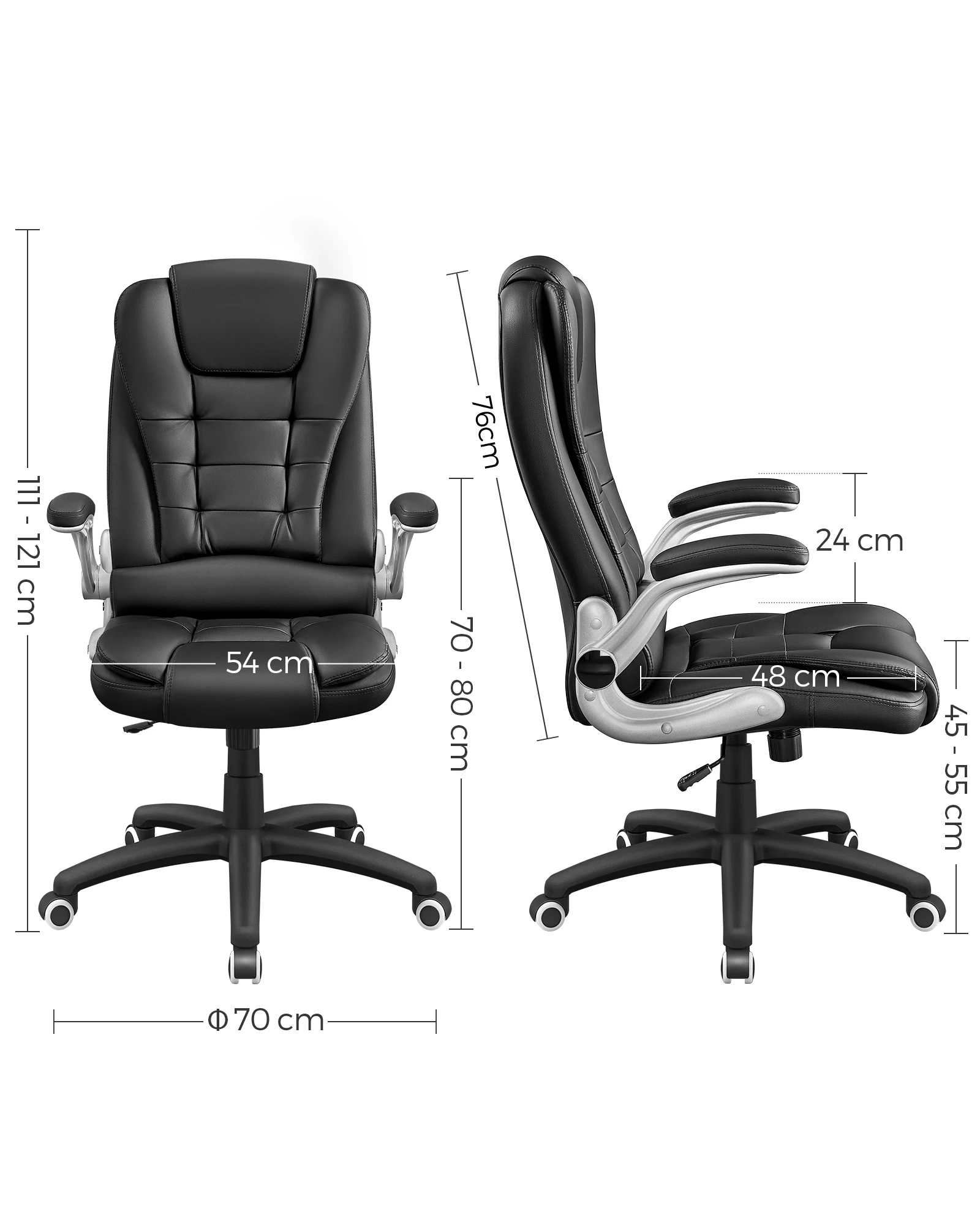 – Base diameter: about 70 cm,tota Height: 112-122 cm,Back height: 76 cm,Seat Size: 54 x 51 cm (Width x Depth),Seat height: about 45-55 cm