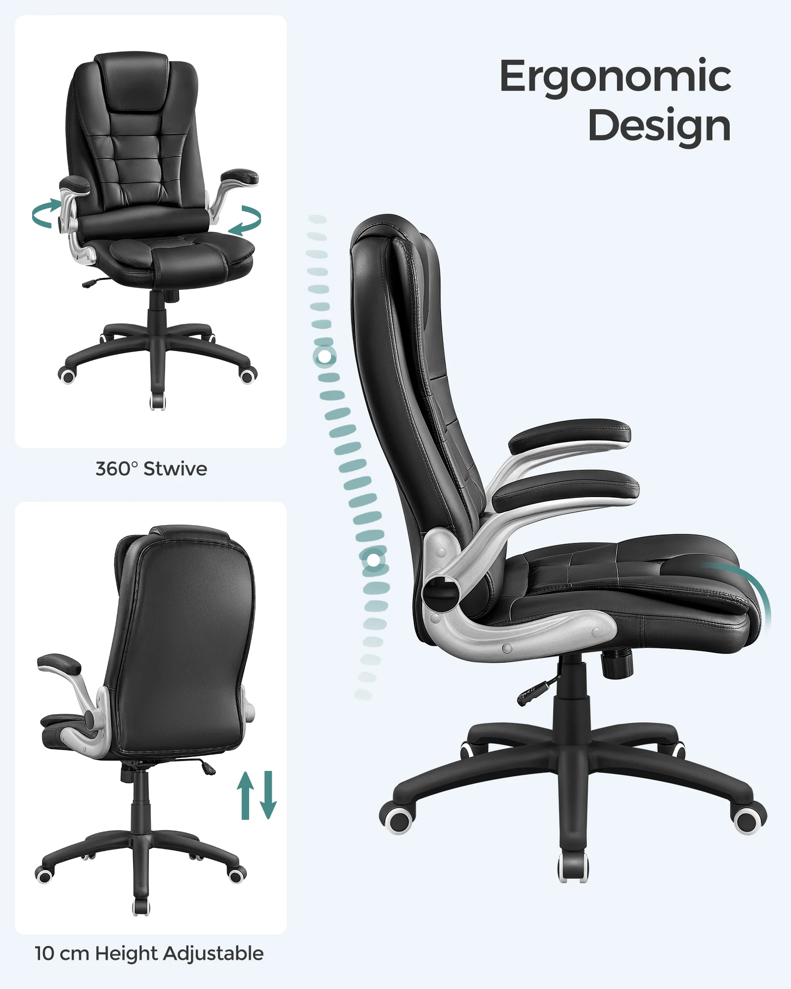 Adjust To Your IdealL Position: Move the seat up or down by 10 cm to set your perfect viewing angle; the reclining position is adjustable between 90-110°; 360°swivel for multi-tasking convenience