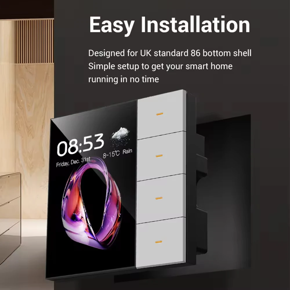 This smart switch Feature a 3.5-inch HD touchscreen, combines lighting, curtain, scene, and dimming controls into one device for home automation.