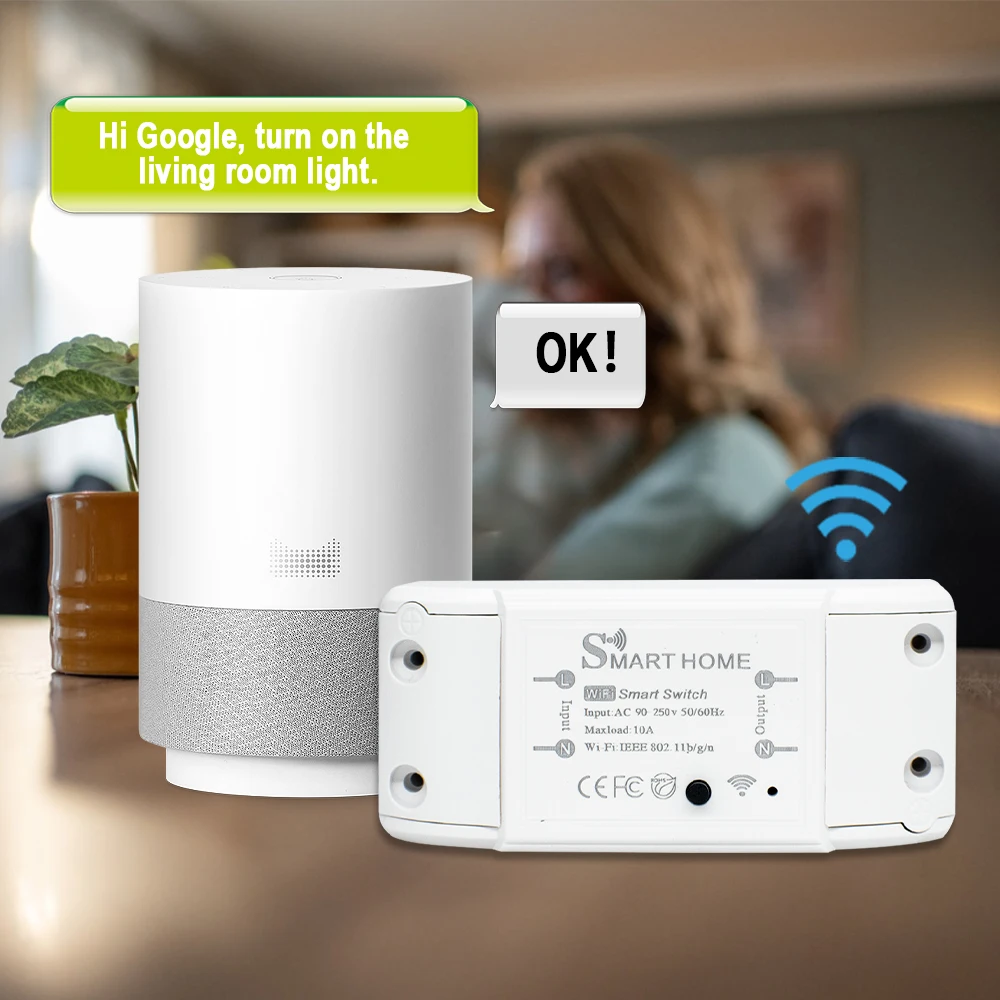 Tuya WiFi 10A DIY Mini Smart Light Switch 90-250V 50/60Hz Breaker Module Voice Wireless Control for Alexa Google Home