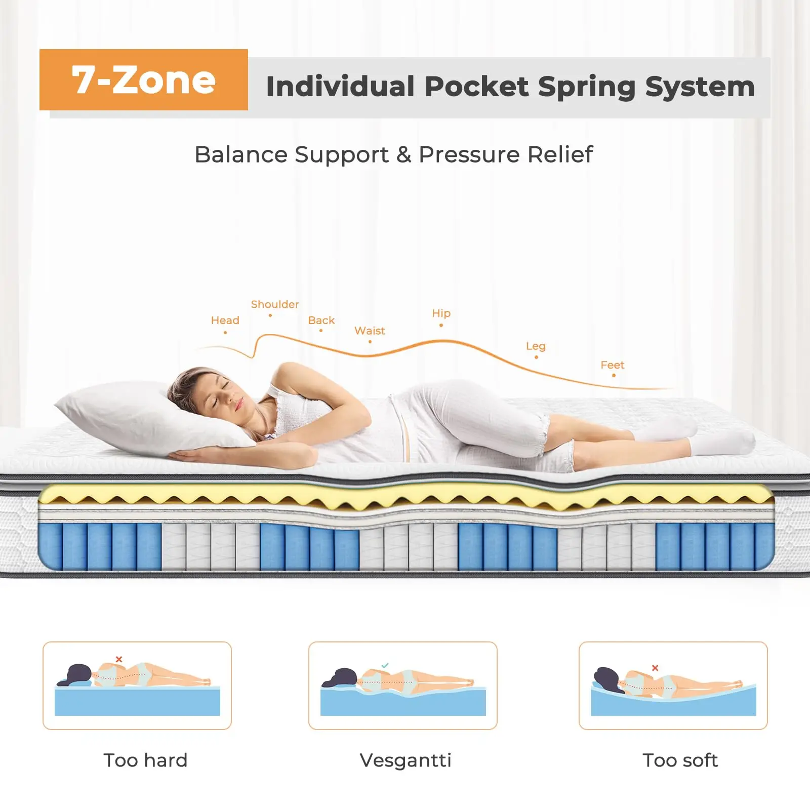 - 【medium to firm mattress】- vesgantti pillow top mattress is made in china and fully complies with certipur-us certification.With multiple foam layers and hundreds of individual pocket springs, this hybrid mattress is soft enough to be comfortable yet firm enough to be supportive, ideal for side, back and stomach sleepers