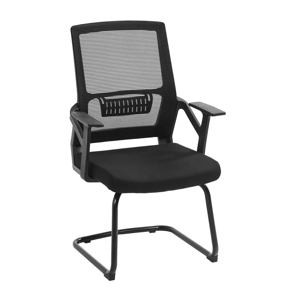 Designed for comfort, built for lasting performance. This office chair features a reinforced upper frame for enhanced rigidity and stability. The breathable mesh backrest and seat promote airflow, keeping you cool during long sitting periods. The seat is padded with recycled cotton for a soft, supportive feel. A sturdy iron base ensures durability and balance, while the classic black finish blends seamlessly into any professional environment. Ideal for reception areas, meeting rooms, and waiting rooms.