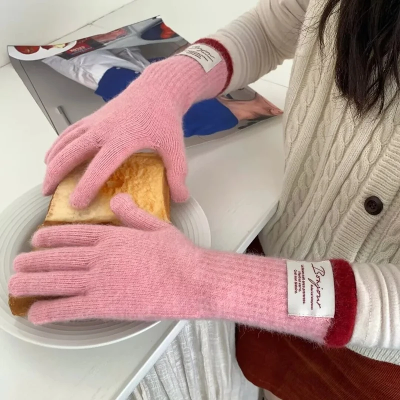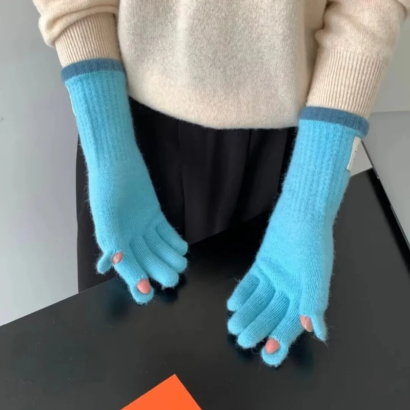 Winter Knitted Five-Finger Gloves with Color Block – Versatile Touchscreen-Compatible Suitable for Cycling & Warm