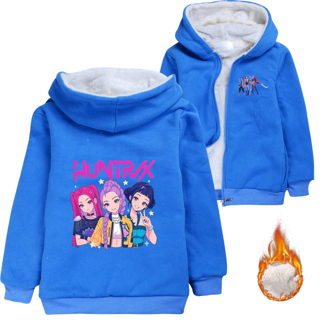 Winter Kpop Demon Hunters Double-layer Cotton coat Children Clothes Kid Girl Boy Sweatshirt Zipper Hoody Baby Casual Top