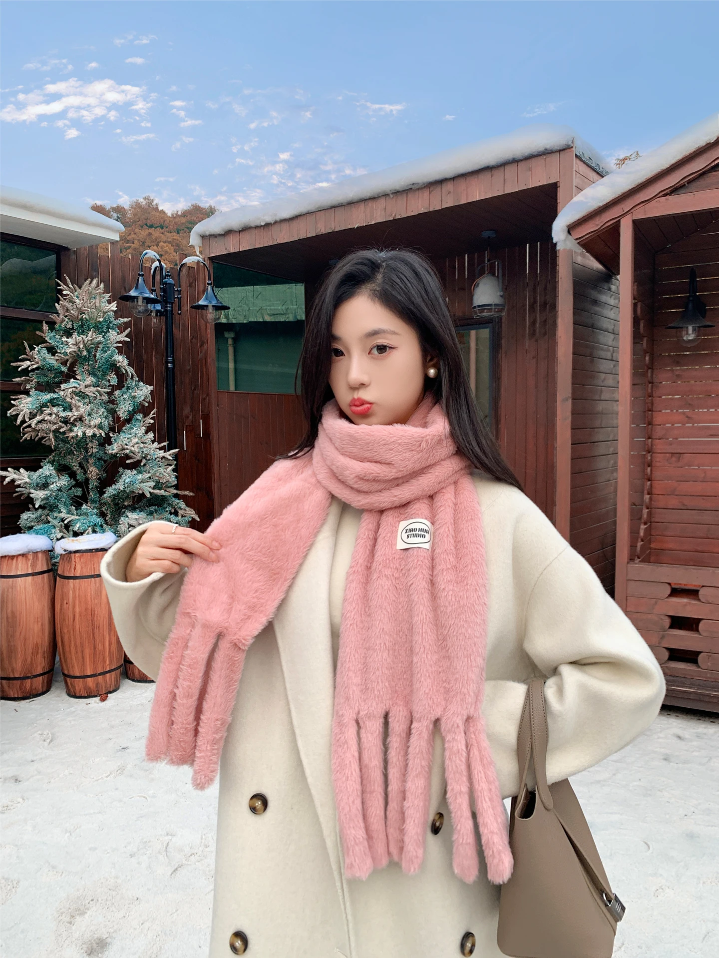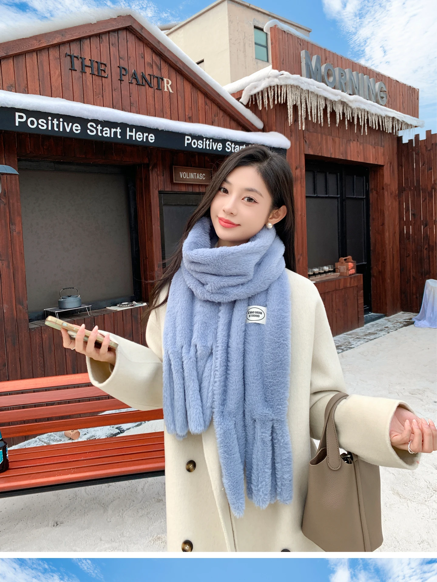 Winter Plush Solid Scarf for Women Thick Warm Long Tassel Shawls Neck Protection and Cold-proof Scarves New Luxurious Muffler