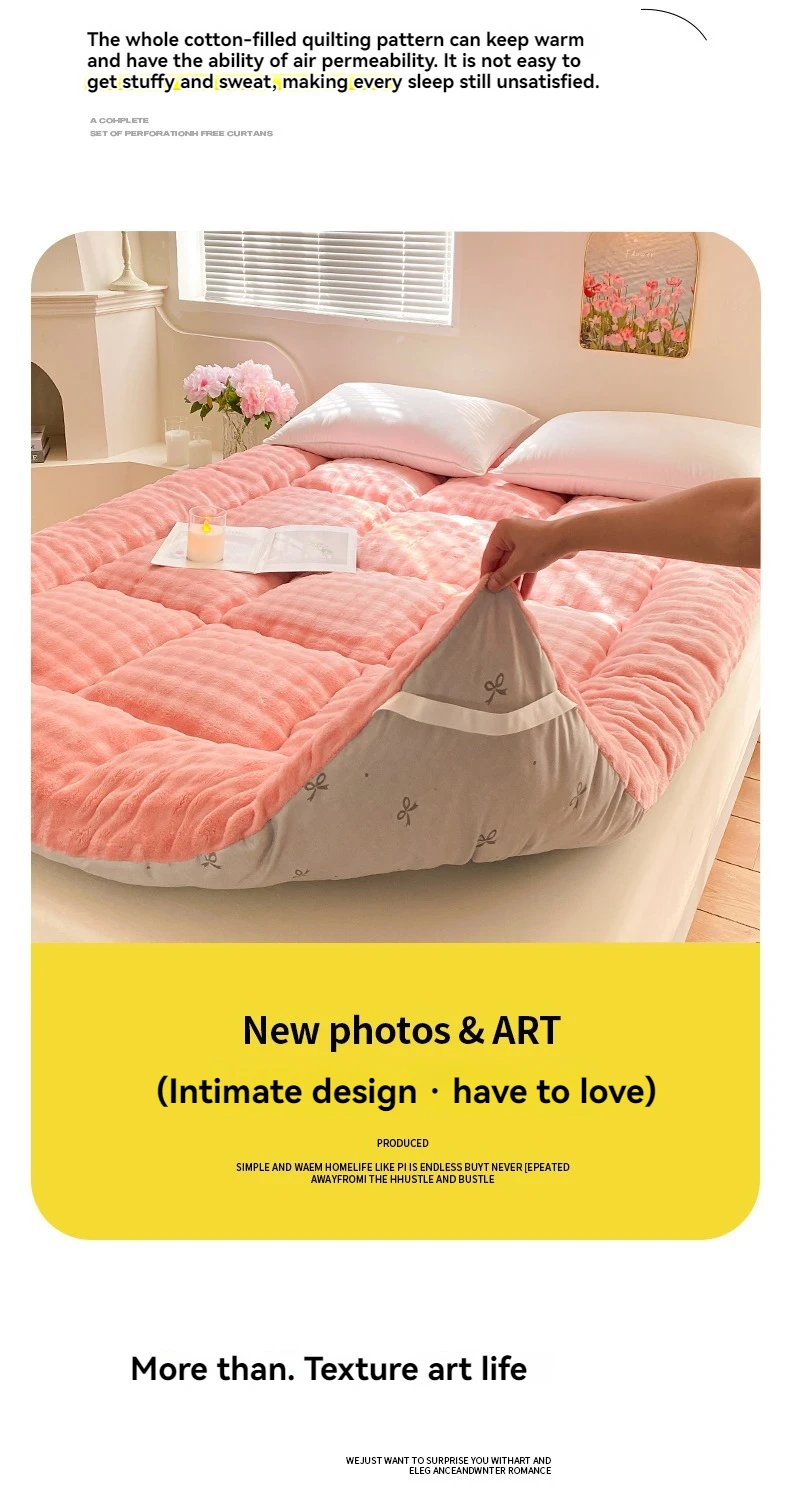 Winter thickened warm rabbit plush mattress with fluffy household tatami soft cushion student dormitory single warm mattress